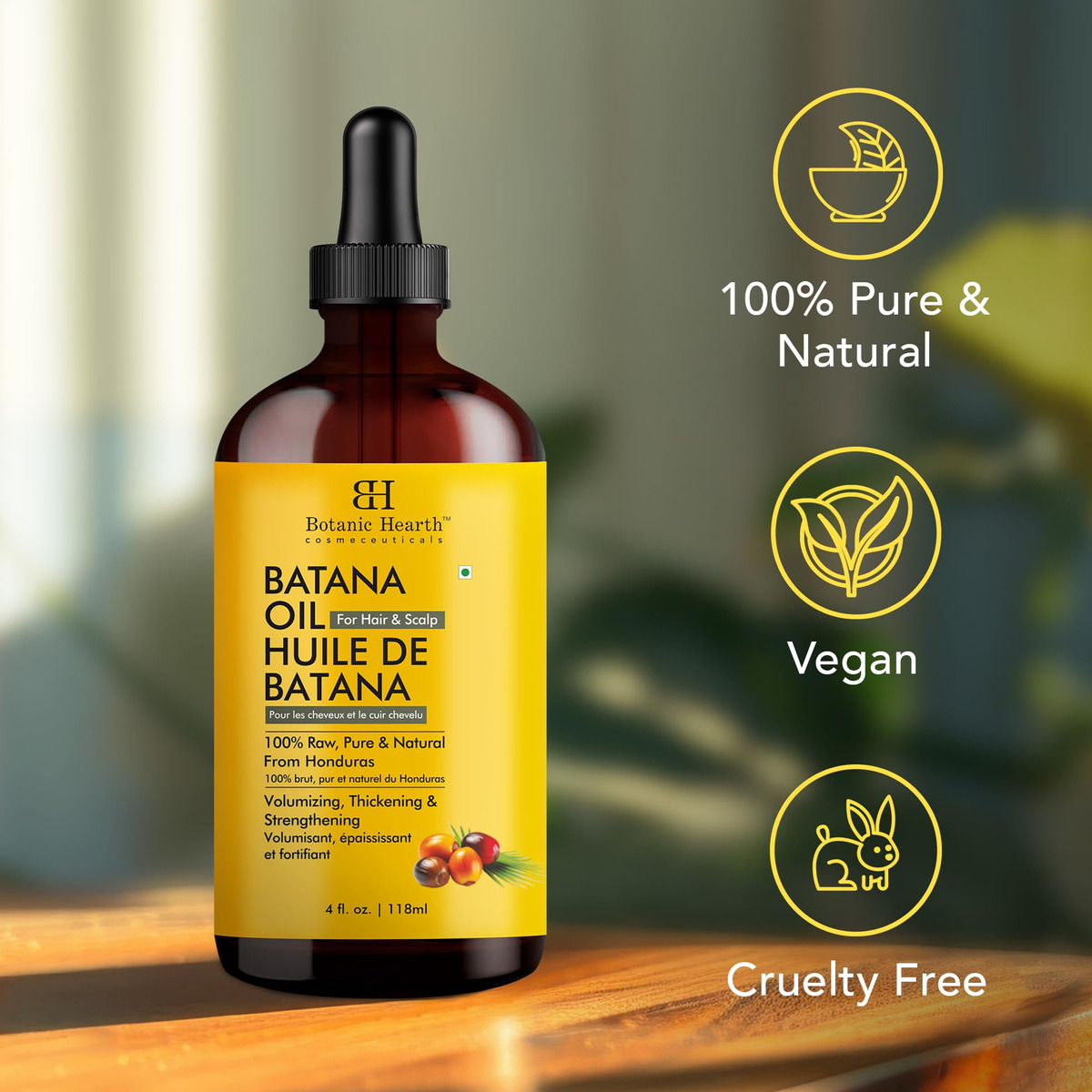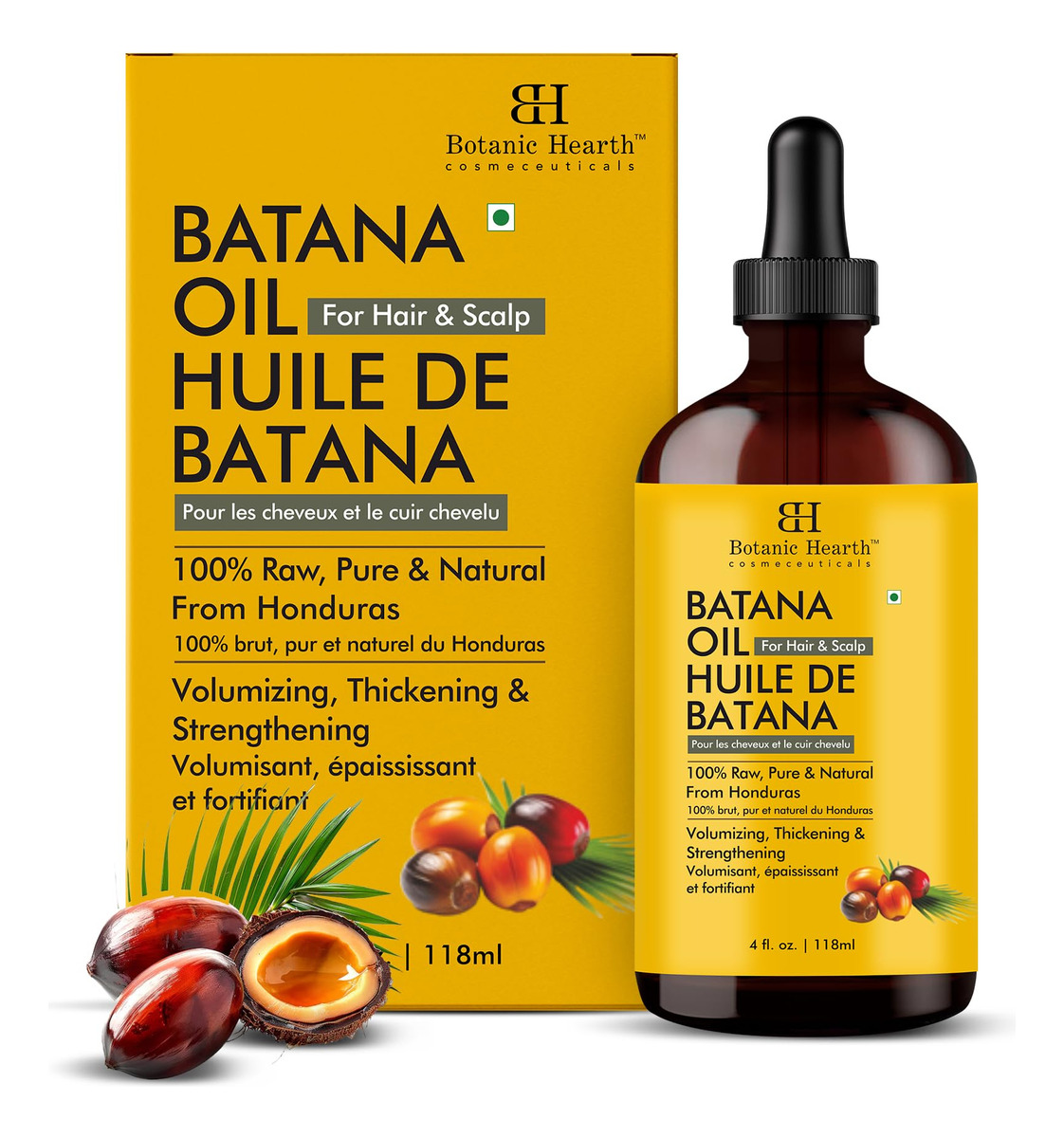 Óleo de batana cru Botanic Hearth para o crescimento do cabelo (4 fl oz) | Óleo 100% puro e não refinado de Honduras | Promove cabelos mais espessos e fortes