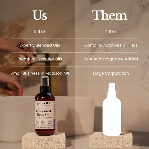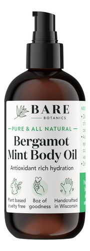 Óleo corporal de bergamota e menta BARE BOTANICS de 8 onças Óleos 100% puros e naturais para a pele, perfeito para hidratação, vegano, livre de crueldade – Óleo corporal após o banho: óleo corporal não oleoso e de rápida absorção, formulado por especialistas para fornecer hidratação que penetra profundamente na pele; um hidratante completo perfeito para corpo, cabelo e unhas – Hidratante formulado personalizado: cada frasco é formulado com nossos aromas exclusivos e feito com ingredientes naturais e óleos essenciais; sem aditivos ou fragrâncias servidos à mão por nossa equipe em WI – Plant Based Body Care: Our óleos não oleosos e com aroma natural fornecem hidratação e hidratação profundas, suavizando a pele seca e escamosa e melhorando a saúde do cabelo – Óleo corporal diário após o banho: de rápida absorção que funciona bem como óleo pós-banho para hidratação instantânea, basta bombear sobre a pele úmida e secar levemente para ver sua pele brilhar – 8 fl oz de hidratação natural: esse hidratante completo pode durar meses; enriquecido com vitaminas A, C, & E, apenas três bombas são suficientes para nutrir e hidratar profundamente todo o corpo