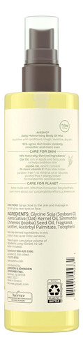 Hidrata e condiciona a pele: formulado com ingredientes de origem natural, este spray corporal contém óleo de aveia, que é rico em lipídios e ácidos graxos para ajudar a condicionar a pele e óleo de jojoba, que contém até 2x mais vitamina Manteiga de karité E do que