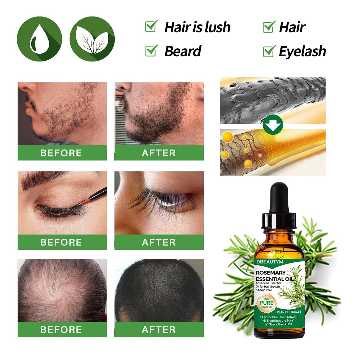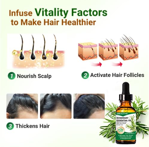Óleo de alecrim para o crescimento do cabelo e cuidados com a pele, óleos essenciais de alecrim orgânico, óleo de alecrim natural para tratamento de queda de cabelo, estimula o crescimento do cabelo – contém colágeno, óleo de argan, óleo de coco e manteiga de karité para reparar profundamente os cabelos secos e danificados. A máscara hidratante ajuda a restaurar o cabelo enquanto lida com pontas duplas, quebras e crespos. Auxilia nos danos causados pela exposição ao sol, secagem e coloração. – Saúde do couro cabeludo e do cabelo: óleo de alecrim orgânico para o crescimento do cabelo nutre e purifica profundamente o couro cabeludo, melhora a circulação sanguínea e combate a quebra do cabelo. Os óleos de crescimento capilar de alecrim ajudam a reparar cabelos secos e danificados, resultando em cabelos mais fortes, densos e vibrantes – Óleo essencial 100% puro e natural: é feito de ingredientes como alecrim e óleo de coco, seguro e eficaz, sem conservantes, promove o crescimento do cabelo rejuvenescendo os folículos pilosos. O óleo de alecrim para cabelos é o complemento perfeito para os rituais diários do cabelo para a nutrição natural do cabelo. Adicione 1-2 gotas de óleo essencial de alecrim puro às rotinas de cuidados com os cabelos. – Nutre o cabelo e promove o crescimento do cabelo: melhora a circulação, estimula o crescimento do cabelo. Diluído e usado topicamente, suas propriedades tônicas ajudam a estimular os folículos pilosos a alongar e fortalecer o cabelo enquanto retarda o envelhecimento, minimiza a queda de cabelo e hidrata o couro cabeludo seco – Uso multifuncional: o óleo de alecrim é versátil e pode ser usado em vários produtos artesanais, fazendo sabonetes caseiros, difusor, loção, projeto DIY. Isso torna o ar perfumado quando colocado em ambientes fechados; coloque-o na água do banho, promova a circulação sanguínea, coloque-o no cérebro para ajudar a aliviar o estresse.