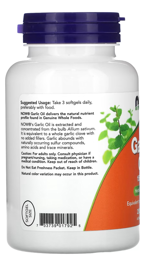 O Óleo de Alho 1500mg da Now Foods é apresentado em uma embalagem com 250 softgels, criadas para uma incorporação prática e direta em sua rotina. Estas cápsulas são uma representação de autenticidade, trazendo o melhor do alho em forma concentrada.;