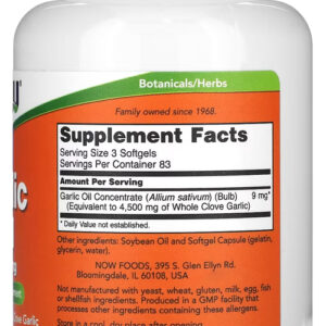 A essência deste produto reside na sua simplicidade e pureza. Com o foco em ingredientes autênticos, cada softgel entrega a verdadeira natureza do alho, sem qualquer aditivo ou substância indesejada, refletindo o compromisso da Now Foods com a autenticidade.;
