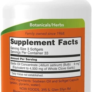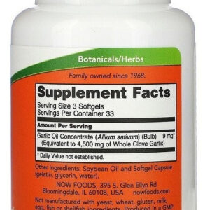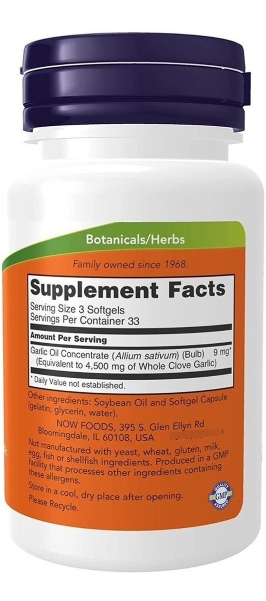 Óleo De Alho Now Foods 1.500 Mg, 100 Cápsulas Gelatinosas, Sabor Sem Sabor