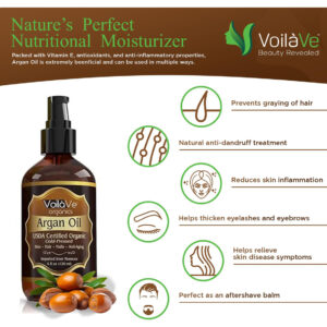 O óleo de argão restaura o brilho dos cabelos secos, danificados ou sem brilho. Naturalmente rico em ácidos graxos benéficos, vitamina E e carotenos, hidrata e suaviza a pele de forma segura e natural. O óleo de argão VoiLave é importado de Marrocos. É extraído por prensagem a frio para que seja completamente puro. Este óleo de argan poderoso e natural é perfeito para cabelos danificados e ásperos. Ajude a recuperar sua suavidade com apenas algumas gotas curativas. Hidratante para a pele O óleo de argão é facilmente absorvido e não é gorduroso nem irritante. Basta aplicar algumas gotas no rosto e pescoço usando movimentos suaves de esfregar, como faria com qualquer loção para rosto e corpo. Está comprovado que o óleo de argan torna o cabelo mais macio, sedoso e brilhante. É o condicionador de cabelo ideal e pode até ajudar a tratar pontas duplas e domar cabelos crespos. Tratamento para pés, mãos e unhas As propriedades suavizantes dos óleos de argão são ideais para unhas quebradiças, mãos secas e pele dura e rachada nos pés. Massagear algumas gotas de óleo de argan nas cutículas, mãos e pés antes de dormir todas as noites fará maravilhas pela manhã! – ÓLEO DE ARGAN MULTIUSO: O óleo de argão 100% VoiLave é perfeitamente adequado para seu cabelo, rosto e pele. O óleo de argão orgânico é leve, de rápida absorção e adequado para todos os tipos de pele. É suave o suficiente para ser usado até mesmo na pele mais sensível. O óleo de argan puro é ótimo para cuidados orgânicos com a pele, tratamento de unhas e reparação do cabelo. – ÓLEO DE ARGAN ORGÂNICO CERTIFICADO PELO USDA: O óleo de argan VoiLave para mulheres é proveniente das árvores de argan ricas em nutrientes do Marrocos e é certificado pelo USDA. A certificação USDA garante a integridade do nosso óleo de argan orgânico. Em outras palavras, é realmente 100% seguro e orgânico. – ESTIMULE O CRESCIMENTO DO CABELO: O óleo de argan VoiLaves para cabelos ajuda a crescer cabelos mais longos e grossos de forma rápida e natural usando nosso melhor óleo de argan, considerado um óleo natural de crescimento capilar. Nosso óleo de argan natural pode ser adicionado ao seu xampu ou condicionador para deixar seu cabelo macio, brilhante e gerenciável. – EFEITO ANTIENVELHECIMENTO: O óleo de argan para a pele permite que a pele retenha a umidade para um brilho duradouro. Também ajuda a reduzir rugas e linhas finas e atua como um ótimo hidratante antienvelhecimento. Nosso óleo de argão de Marrocos também pode ser usado como óleo para barba, óleo para unhas e óleo para lábios. É um excelente hidratante labial orgânico que também suaviza e fortalece as unhas secas e quebradiças. – INGREDIENTES DE ALTA QUALIDADE: Nosso óleo de argan hidratante 100% puro não é refinado, sem preenchimentos ou aditivos. É naturalmente rico em vitamina E e prensado a frio a partir de grãos da árvore Argania colhidos de forma sustentável. A VoiLave está por trás de cada item que fabricamos, 100%. Se você não estiver totalmente satisfeito com sua compra, ficaremos felizes em substituí-la ou emitir um reembolso total.