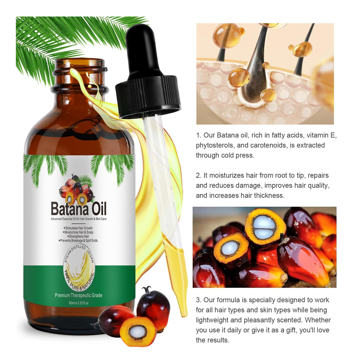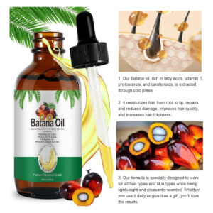 Prensado a frio a partir da noz da planta, a atividade antioxidante do Óleo de Batana o torna um complemento ideal para produtos cosméticos, ajudando a nutrir e proteger a pele dos estressores ambientais. Como usar Aplique o óleo de Batana em cabelos úmidos ou secos, com foco nas pontas para aumentar a umidade, ou use-o como um tratamento condicionador para dar brilho extra. – 100% puro e natural. Sem aditivos, sem produtos químicos, apenas a bondade pura e natural do óleo de batana. – Óleo de batana orgânico para o crescimento do cabelo Nosso óleo de batana prensado a frio é 100% orgânico, o óleo de batana faz maravilhas ao promover o crescimento do cabelo e hidratar profundamente o couro cabeludo, reabastecer e revitalizar os cabelos danificados – Óleo de batana cru para todos os tipos de cabelo, mulheres e homens com cabelos fracos, cabelos finos, cabelos recuados, encaracolados, lisos, curtos, cabelos, tranças e tecidos longos, secos, ondulados, crespos ou tratados quimicamente. – Crescimento do cabelo com óleo de botana Como usar Aplique o óleo de batana nos cabelos úmidos ou secos, com foco nas pontas para aumentar a umidade. Massageie o couro cabeludo por 3-5 minutos e torne-o uma parte regular de sua rotina de cuidados com o cabelo. Experimente mechas fortes e nutridas e uma prevenção eficaz de danos ao cabelo. – Tratamento caseiro eficaz. O óleo de batana pode ser aplicado diretamente nas raízes do cabelo e massageado suavemente no couro cabeludo para estimular o crescimento do cabelo e nutrir o couro cabeludo. Depois de lavar o cabelo, você pode aplicar uma pequena quantidade do óleo e massageá-lo. Nosso óleo de batana é uma adição obrigatória à sua rotina de cuidados com o cabelo, adequado para homens e mulheres