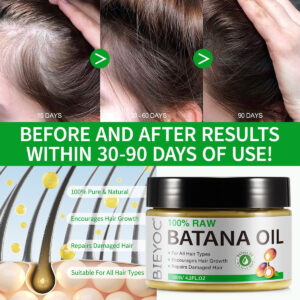 – Brilho natural: deleite-se com o brilho natural do cabelo com as propriedades que refletem a luz do óleo de batana, realçando seu brilho e brilho.