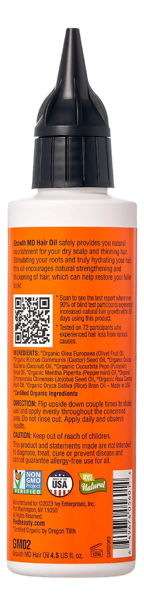 Produto orgânico certificado pelo USDA. Isso significa que mais de 95% do produto é feito de conteúdo orgânico e que agricultores e empresas atendem aos rígidos padrões do USDA para o cultivo, processamento e manuseio de seus produtos. – Fornece nutrição natural com segurança para o couro cabeludo seco e cabelos finos. Estimulando as raízes e hidratando verdadeiramente o cabelo, o óleo para cabelo e couro cabeludo Growth MD estimula o fortalecimento e o espessamento naturais do cabelo, o que pode ajudar a restaurar sua aparência mais completa. Tornado 100% natural apenas com óleos orgânicos não transgênicos certificados pelo USDA, amplamente conhecidos por auxiliar no crescimento do cabelo; óleo de oliva, óleo de mamona, óleo de coco, óleo de semente de abóbora, óleo de hortelã, óleo de jojoba, óleo de rosa mosqueta, óleo de farelo de arroz – Adequada para todos os tipos de cabelo, nossa linha atende aqueles com cabelos cacheados a oleosos, propensos a ressecamento e crespo. Nosso óleo especializado garante retenção duradoura de umidade, enquanto os séruns e ampolas à base de umidade oferecem cuidados universais para o couro cabeludo. Experimente um cuidado capilar abrangente que atenda às diversas necessidades com facilidade. – Como usar: vire de cabeça para baixo algumas vezes para agitar bem e aplicar uniformemente em toda a área em questão. Não enxágue. Aplique diariamente e observe os resultados — Disponível em 2 fl.oz. e 4.5 fl.oz.