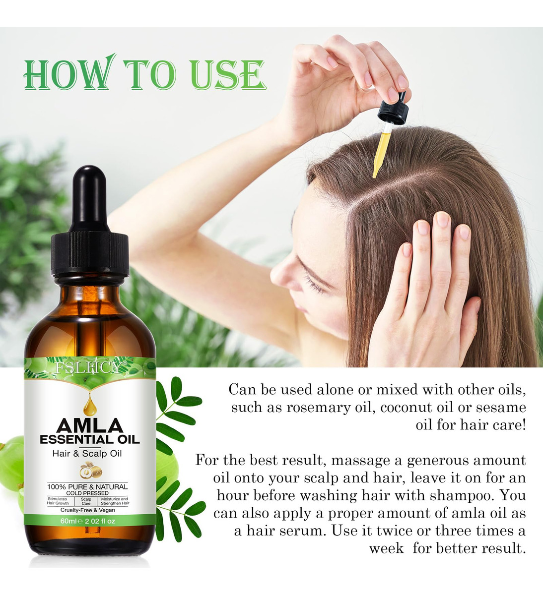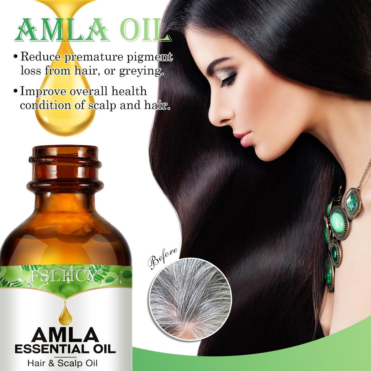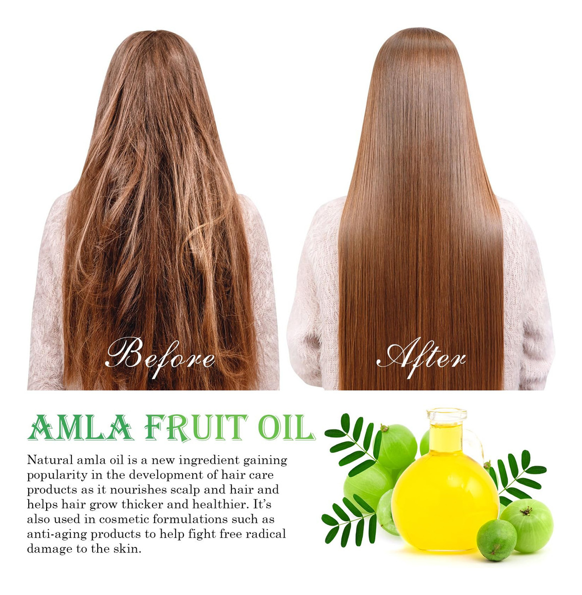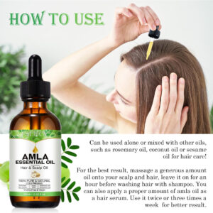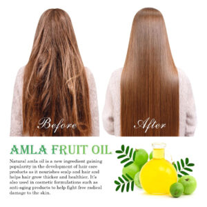 O óleo de amla, também conhecido como óleo de groselha indiana, é extraído a frio da semente da planta Emblica Officinalis. Comumente usado na Ayurveda, esse óleo marrom-amarelado é rico em vitamina C com fortes propriedades antioxidantes. Crescimento do cabelo Os fitonutrientes, vitaminas e minerais presentes na amla ajudam a aumentar a circulação do couro cabeludo e estimulam o crescimento. A vitamina C da amla produz proteína de colágeno. Isso pode ajudar a estimular o crescimento do cabelo, tanto em termos de comprimento quanto de volume. Os colágenos substituem as células mortas dos folículos pilosos por novas células ciliadas. Ajuda com a caspa A caspa geralmente é o resultado da secura. Este óleo rico em vitamina C ajuda na secura e pode limitar o acúmulo de caspa. Amlas Vitamina C, suas propriedades podem deter a caspa e também a coceira causada por ela, no couro cabeludo. Ajuda no envelhecimento dos cabelos. Amla, um refrigerante natural, é um excelente óleo para corrigir a condição de pitta, o que minimiza o envelhecimento. Fortalece o cabelo O óleo de amla serve como um tônico benéfico para a pele e o cabelo. Ele fortalece os folículos pilosos, facilitando assim o crescimento do cabelo e o fortalecimento do cabelo. Além disso, fortalece as raízes, mantém a cor e melhor brilho. – O óleo de cabelo Amla nutre, hidrata e protege os cabelos do ressecamento. Ele mantém a caspa e os grisalhos prematuros afastados. Nutre o couro cabeludo e fortalece os fios de cabelo, da raiz às pontas, para proporcionar cabelos grossos, longos e brilhantes. – Óleo de Amla 100% puro e natural. Prensado a frio. As bagas de Amla também são uma excelente fonte de vitamina C. A vitamina E, que pode ajudar a manter um couro cabeludo saudável e cabelos grossos e fortes – o óleo de Amla torna o cabelo sedoso e macio, ajuda a melhorar a saúde do cabelo, confere brilho e força às madeixas. Este óleo suaviza os cabelos crespos e os torna fluidos e fáceis de pentear. Nosso óleo Amla Hair nutre e hidrata o cabelo para proporcionar madeixas macias e flexíveis que deixam você linda. – Os ricos nutrientes em Amla facilitam a circulação sanguínea e nutrem os folículos capilares para fortalecer as raízes e minimizar a queda do cabelo. – Nosso óleo Amla Hair pode adicionar nutrição e hidratar o cabelo para proporcionar cabelos macios e flexíveis que deixam você linda. Pode ser usado por homens e mulheres que desejam manter cabelos fortes e saudáveis.