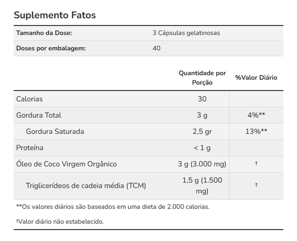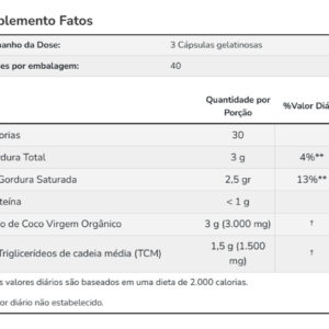 2. Vantagem da Forma de Apresentação: Apresentado em softgels, este produto oferece conveniência e facilidade de consumo. Uma maneira prática de incorporar os benefícios do óleo de coco à sua rotina diária.