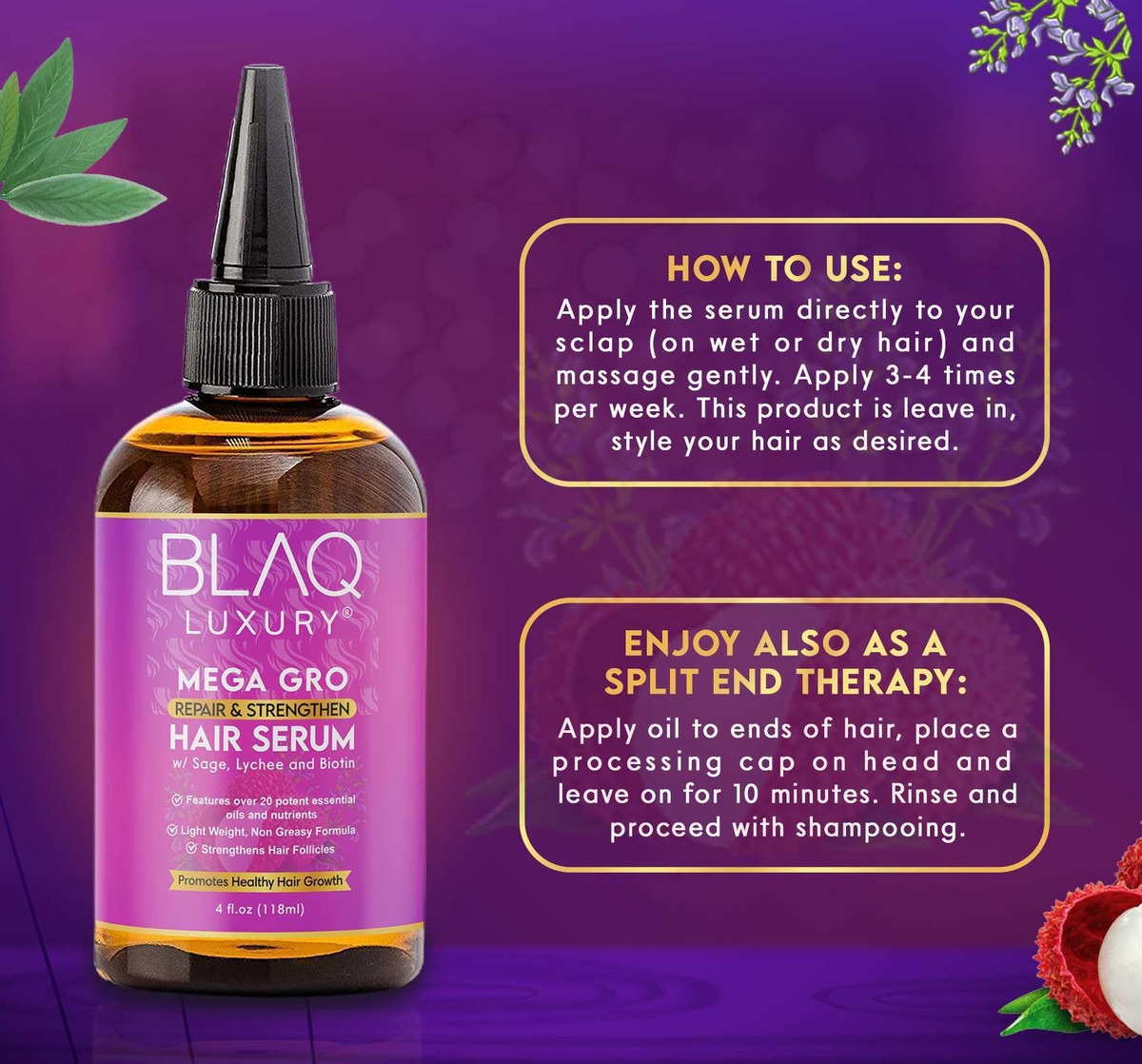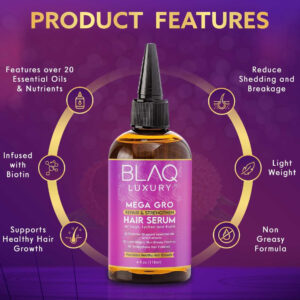 Óleo de crescimento capilar Blaq Luxury — Tratamento de couro cabeludo seco para couro cabeludo seco com coceira com biotina para reparo e fortalecimento, sérum capilar para cabelos crespos e danificados, tratamento reparador de pontas duplas para mulheres — 4 onças — Promove o crescimento saudável do cabelo: nosso óleo nutritivo estimulador do couro cabeludo não apenas repara o cabelo, mas também o fortalece. Livre de substâncias químicas nocivas, esta fórmula habilmente misturada pode ser usada como parte de sua rotina diária de cabelo ou como um tratamento intensivo com óleo para evitar danos aos cabelos elegantes e fortes com um aroma refrescante. – Infusão de biotina: a falta de biotina pode levar à queda de cabelo e desempenha um papel vital na saúde do cabelo, da pele e das unhas. Nosso sérum espessante de cabelo estimula o crescimento saudável do cabelo. Ele pode ser usado não apenas em sua rotina diária, mas também para um tratamento com óleo quente. – Revitalizando o crescimento do cabelo com óleo do couro cabeludo: esta mistura de óleos revigorantes massageia o couro cabeludo, aumentando a circulação para obter as condições ideais de crescimento do cabelo. Resultando em cabelos lisos, macios e brilhantes. – Tratamento de couro cabeludo seco para mulheres com 20 óleos essenciais e nutrientes: sérum calmante para couro cabeludo seco e escamoso: elimine a coceira e as escamas com este tratamento de couro cabeludo ultra-hidratante que restaura o equilíbrio e a vitalidade. – Seguro para todos os tipos e texturas de cabelo: nosso sérum capilar Mega Gro Repair and Strength nutre cabelos saudáveis para todos os tipos de cabelo, quimicamente cabelos tratados, tranças, tecidos e cabelos com baixo e alto nível de porosidade.