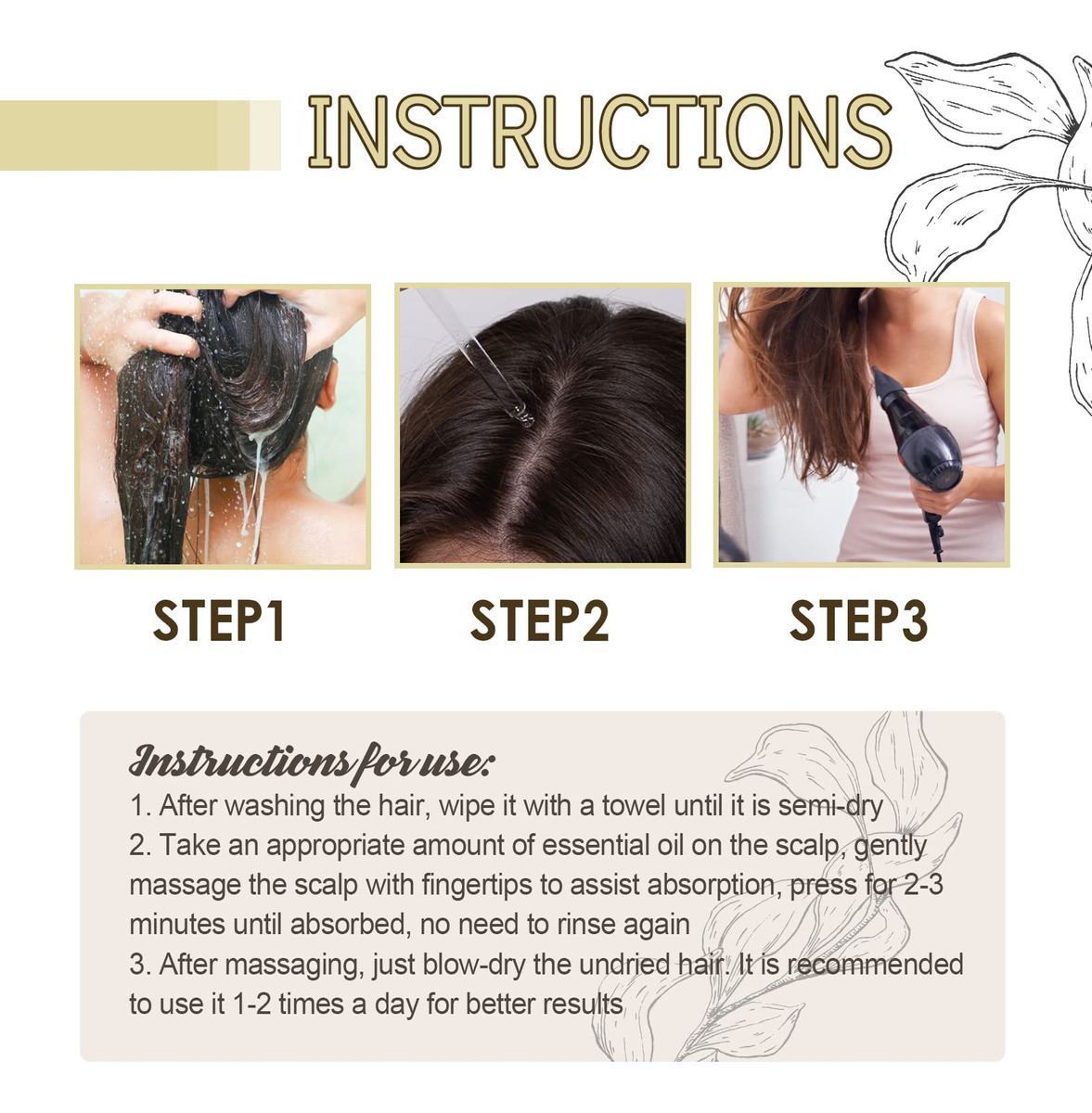 Capacidade líquida: 60 ml/garrafa (2 garrafas) Peso bruto: 70 g/garrafa Tamanho da embalagem: 11,8* 3,5* 3,5 cm Ingredientes naturais: óleo de alecrim, óleo de abacate, óleo de coco, azeite de oliva, óleo de lavanda, óleo de amêndoa, óleo de rícino Eficácia: cabelo danificado, nutre o cabelo Adequado para: todos os tipos de cabelo para homens e mulheres – Óleo de crescimento capilar de alecrim: Carvenchi Natural Hair Growth O óleo fortalece a raiz do cabelo e nutre o cabelo, reduz a queda e a quebra do cabelo. – Ingredientes naturais: nossa mistura exclusiva de mais de 10 óleos naturais fornece os nutrientes essenciais de que seu cabelo precisa para prosperar. Experimente o poder das plantas em manter cabelos mais densos e cheios. – Como usar: aplique o óleo natural de crescimento capilar para cabelos no couro cabeludo, massageie com os dedos por 2-3 minutos, use 1 a 2 vezes ao dia. – O mais recente óleo essencial nutritivo para cabelos em 2023: ingredientes de óleo de rícino tornam seu cabelo mais espesso, ingredientes de azeite de oliva tornam seu cabelo mais liso, óleo essencial de alecrim oferece uma fragrância leve. – Práticas livres de crueldade: vegano O óleo natural para o crescimento do cabelo sempre priorizou práticas livres de crueldade, garantindo que nenhum animal esteja envolvido em nenhuma etapa do nosso produto Criação.