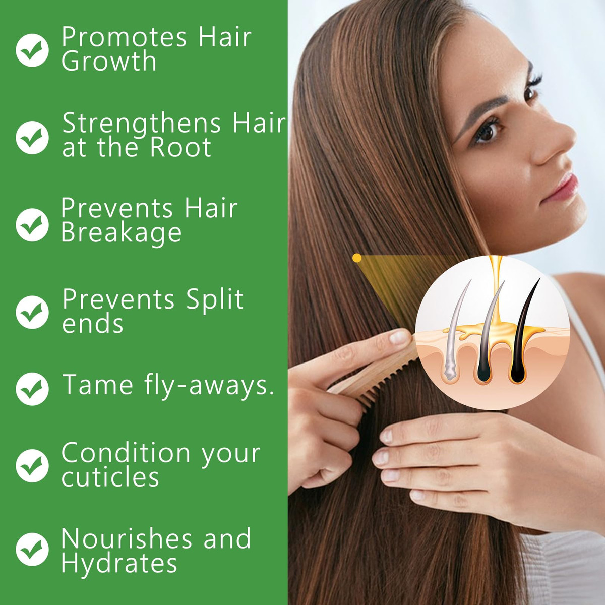 Promove o crescimento do cabelo: o óleo de alecrim no óleo de rícino estimula os folículos pilosos, promovendo o crescimento saudável do cabelo e reduzindo a queda de cabelo. Fortalece e nutre: Os óleos fornecem nutrientes e vitaminas essenciais ao cabelo, fortalecendo os fios e nutrindo o couro cabeludo para um cabelo mais saudável e resistente. Hidrata e condiciona: O óleo capilar hidrata e condiciona profundamente o cabelo, deixando-o macio, suave e manejável. Ajuda na saúde do couro cabeludo: o óleo de alecrim tem propriedades que podem ajudar a melhorar a saúde do couro cabeludo, reduzindo a caspa e a coceira. Melhora o brilho e a textura: o uso regular deste óleo capilar pode realçar o brilho natural e melhorar a textura geral do cabelo, tornando-o mais vibrante e revitalizado. – [Conjunto de pentes de massagem com óleo de alecrim e silicone] – Nosso óleo de alecrim é 100% puro e natural, proveniente de ingredientes de alta qualidade. O pente de massagem de silicone foi projetado para melhorar a aplicação do óleo essencial. – [Combinação perfeita] – O óleo essencial de alecrim pode ser usado para cuidados com a pele e cabelos. O pente de massagem de silicone ajuda a distribuir o óleo uniformemente pelo couro cabeludo e pelo cabelo. – [Massageador de couro cabeludo leve e confortável] – O pente de massagem de silicone vem com 9 cabeças de escova esféricas integradas. O comprimento da cabeça da escova é de 1,1 polegadas e o design hexagonal exclusivo em forma de diamante da cabeça da escova do shampoo oferece uma capacidade de limpeza suave e completa. – [Promove o crescimento do cabelo] – Este óleo de crescimento capilar estimula efetivamente o crescimento natural do cabelo ao ativar naturalmente o tecido germinativo do folículo piloso dormente no couro cabeludo, permitindo um rápido crescimento e nutrição devido aos seus ingredientes orgânicos exclusivos. – [Cuidados com o rosto e a pele] – O óleo de alecrim orgânico é um ativo essencial para o cuidado da pele. Ele efetivamente restaura o brilho saudável da pele enquanto minimiza manchas, acne, cicatrizes e linhas finas, sem causar ressecamento ou danos à pele.