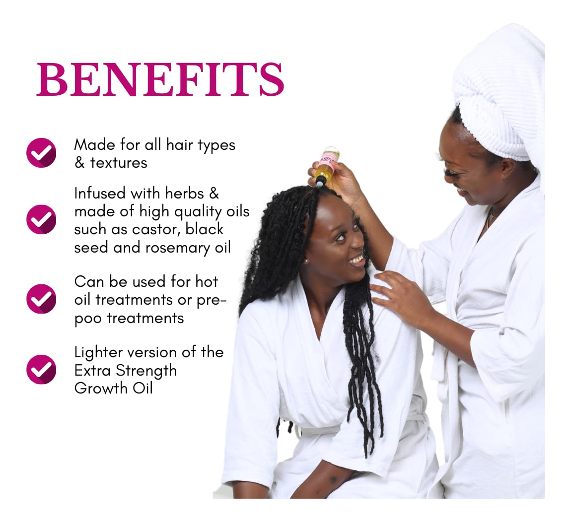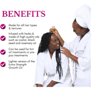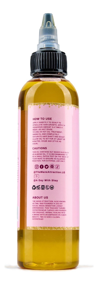 FORTALEÇA E CRESÇA: Se você está procurando fortalecer e aumentar seus fios, este óleo é perfeito para você! É infundido com ervas que ajudam a acelerar o processo de crescimento do cabelo e fornece um revestimento que ajuda a fortalecer o cabelo. Infundido com ervas e alimentado por ingredientes totalmente naturais, esse óleo é essencial para quem deseja acelerar seu crescimento. Use-o diariamente como parte de seu regime de crescimento capilar ou como tratamento com óleo quente/pré-cocô para evitar danos e proteger a haste contra quebras. – Feito para todos os tipos de cabelo: adequado para todas as texturas de cabelo, nosso óleo multiuso estimulante do crescimento capilar melhora a vitalidade do cabelo e fornece nutrição profunda para uma variedade de tipos de cabelo, incluindo 3A a 4C, fios, tranças, tecidos e cabelos com diferentes níveis de porosidade. Não importa qual seja o tipo ou a textura do seu cabelo, este óleo é perfeitamente misturado para proporcionar crescimento e nutrição a todos. – INFUNDIDO COM INGREDIENTES PODEROSOS PARA O CRESCIMENTO DO CABELO: O óleo estimulante do crescimento capilar Mane Attractions é uma mistura de remédios fitoterápicos que promovem e ajudam a manter o crescimento do cabelo. O alecrim é famoso por aumentar a circulação no couro cabeludo, enquanto o óleo de rícino é um segredo bem conhecido que ajuda no espessamento e crescimento do cabelo. – ACALMA O COURO CABELUDO IRRITADO: Se você sofre de ressecamento e coceira no couro cabeludo, descamação ou irritações no couro cabeludo, esse óleo é ótimo para restaurar a saúde do couro cabeludo. O óleo de alecrim pode aliviar a coceira e o couro cabeludo seco e ajudar a aliviar a caspa, enquanto o óleo de amêndoa, o óleo de rícino e o óleo de semente preta acalmam e tratam o couro cabeludo, preparando-o para o crescimento. – SELA A UMIDADE: O crescimento é apenas metade da solução – a retenção do comprimento da solução é a outra! Para acompanhar com precisão o crescimento, é importante garantir que seu cabelo não se quebre e esse óleo é o selante mais perfeito! O óleo de rícino e o óleo de amêndoa fornecem uma barreira protetora na haste capilar enquanto retêm a umidade.