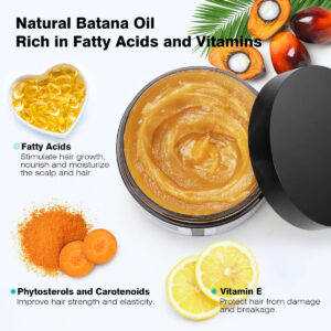 Ingrediente: óleo de batana. Aplique o óleo no couro cabeludo e no cabelo, massageie-o e, possivelmente, deixe-o por um período de tempo antes de lavá-lo. – Óleo de batana cru e natural – O óleo de batana cru e não refinado é fácil de usar em casa. Nutre naturalmente o couro cabeludo, as raízes e os fios para manter cabelos mais cheios, espessos e fortes. – Cabelos mais grossos e fortes – O óleo de batana é rico em ácidos graxos e vitamina E, que ajudam a nutrir o couro cabeludo e estimular os folículos pilosos. Promove cabelos mais grossos e fortes com o uso regular. – Nutrição e hidratação do cabelo – Nosso óleo de batana pode ser usado como parte de sua rotina de cuidados com o cabelo para ajudar a acalmar e hidratar o couro cabeludo seco, melhorar a textura do cabelo e dar brilho às pontas duplas secas e quebradiças. – Perfeito para todos os tipos de cabelo – Nosso óleo de batana é perfeito para homens e mulheres. É adequado para todos os tipos de cabelo, sejam eles secos, oleosos ou mistos. Ele fornece hidratação profunda e melhora a textura do cabelo. – Fácil de usar – O óleo de batana pode ser convenientemente massageado no cabelo, nas pontas do cabelo ou no couro cabeludo. Você pode incorporar o óleo de batana em sua rotina regular de cuidados com os cabelos. Use 2 a 3 vezes por semana para obter cabelos mais grossos e cheios.