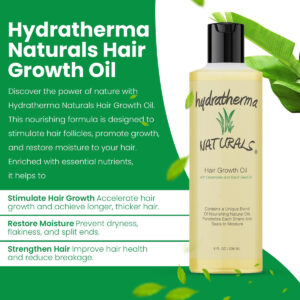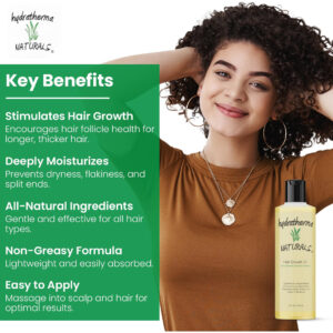 Este óleo de cabelo multiuso é excelente para cabelos naturais e quimicamente tratados. Contém uma mistura exclusiva de 13 ÓLEOS NATURAIS usados para suavizar o cabelo, dar brilho saudável ao cabelo e selar a umidade após o uso da Loção Hidratante de Crescimento Diária Hydratherma Naturals. Repara e previne o ressecamento do couro cabeludo e evita quebras. – Estimula o crescimento do cabelo: enriquecido com óleos naturais potentes que promovem a saúde do folículo piloso, acelerando o crescimento e ajudando você a obter cabelos mais longos e grossos. – Hidratação profunda: fornece hidratação intensa ao couro cabeludo e ao cabelo, evitando ressecamento, escamação e pontas duplas, deixando o cabelo macio, suave e gerenciável. – Ingredientes totalmente naturais: feitos com uma mistura de óleos naturais sem produtos químicos agressivos, garantindo um tratamento suave e eficaz adequado para todos os tipos de cabelo. – Não oleoso Fórmula: leve e de fácil absorção, esse óleo não deixa o cabelo pesado nem o deixa oleoso, tornando-o perfeito para o uso diário. – Protege contra danos: forma uma barreira protetora contra estressores ambientais, calor e ferramentas de modelagem, mantendo o cabelo forte e resistente. – Fácil aplicação: basta massagear algumas gotas no couro cabeludo e no cabelo, deixá-lo aplicado ou pentear como de costume. Use regularmente para obter melhores resultados.