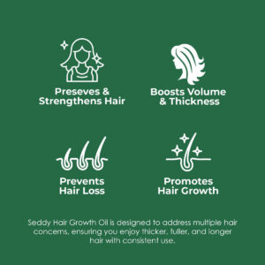 Experimente o poder transformador do Seddy Hair Growth Oil, a solução natural premium definitiva para o crescimento do cabelo, adequada para todos, independentemente da idade ou sexo. Nossa fórmula, livre de produtos químicos agressivos, é infundida com ingredientes potentes como cafeína, alecrim e óleos de rícino, comprovadamente estimulando o crescimento e combatendo a queda de cabelo de forma eficaz. Experimente os benefícios revitalizantes da hortelã, argan, jojoba e saw palmetto, pois fortalecem os fios, nutrem profundamente e combatem as manchas calvas, resultando em cabelos visivelmente mais cheios e longos. Feito sob medida para atender às diversas necessidades de cuidados com os cabelos de todas as idades, sexos e tipos de cabelo, ele incorpora biotina, abóbora e extratos de ervas para reparar danos e promover um crescimento capilar mais espesso e saudável. Adote uma abordagem refrescante e ayurvédica com o Seddy Hair Growth Oil para cachos, tranças e barbas vibrantes que irradiam saúde e força. Transforme sua jornada capilar com Seddy, a escolha confiável para um cuidado capilar natural, eficaz e essencial. – Óleo de crescimento capilar de biotina: a biotina fortalece os fios por dentro, promovendo força, evitando quebras e contribuindo para a saúde geral do cabelo. Este óleo de crescimento capilar é a solução definitiva para o crescimento do cabelo e o combate à alopecia. Estimule o crescimento do cabelo, combata a queda de cabelo e adote cabelos mais grossos e saudáveis da raiz às pontas. – Cafeína e palmeira revitalizam e estimulam o couro cabeludo: nosso óleo de crescimento capilar é um potente bloqueador de DHT que ajuda a prevenir a queda de cabelo inibindo o hormônio responsável pelo encolhimento dos folículos capilares, estimulando os folículos, melhorando a circulação e promovendo cabelos mais espessos e saudáveis. – Cabelos mais grossos, cheios e longos: Descubra a magia do Seddy Natural Hair Growth Oil, uma solução tudo-em-um para cabelos mais grossos, cheios e longos. Nossa fórmula sem produtos químicos aproveita o poder dos ingredientes naturais, garantindo que seu cabelo receba o cuidado que merece para um crescimento e vitalidade ideais. – Óleo de alecrim para o crescimento do cabelo: o óleo de tratamento com óleo de alecrim nutre o couro cabeludo, mas também estimula o crescimento do cabelo e fortalece cada fio, tornando-o mais resistente. Nosso potente elixir projetado para nutrir o couro cabeludo, estimular os folículos e fortalecer os fios para um cabelo mais cheio e saudável. – O óleo de rícino fortalece e nutre: o óleo de rícino é uma potência no cuidado do cabelo, conhecido por suas propriedades hidratantes. Ele não apenas evita quebras, mas também promove cabelos mais grossos e cheios, nutrindo o couro cabeludo. – Equilíbrio e umidade do óleo de jojoba para um crescimento saudável: o óleo de jojoba com sua estrutura molecular semelhante aos óleos naturais produzidos pelo couro cabeludo, regula a produção de sebo, mantendo o couro cabeludo equilibrado e hidratado, promovendo um crescimento saudável do cabelo. – O óleo de argão restaura o brilho e a proteção: o óleo de argão rico em antioxidantes e ácidos graxos essenciais fornece hidratação profunda ao cabelo, melhorando sua elasticidade e brilho, protegendo-o dos danos ambientais. – Óleo de alecrim para crescimento de cabelo para mulheres e homens Sérum de crescimento de cabelo para mulheres Tratamentos de queda de cabelo para mulheres Óleo de crescimento de cabelo Produtos para espessamento de cabelo para mulheres Tratamentos de crescimento de cabelo para mulheres Sérum para crescimento de cabelo para mulheres Tratamento de crescimento de cabelo para mulheres Óleo de cabelo para cabelos secos e danificados e óleo de rícino de alecrim para crescimento capilar produtos para mulheres