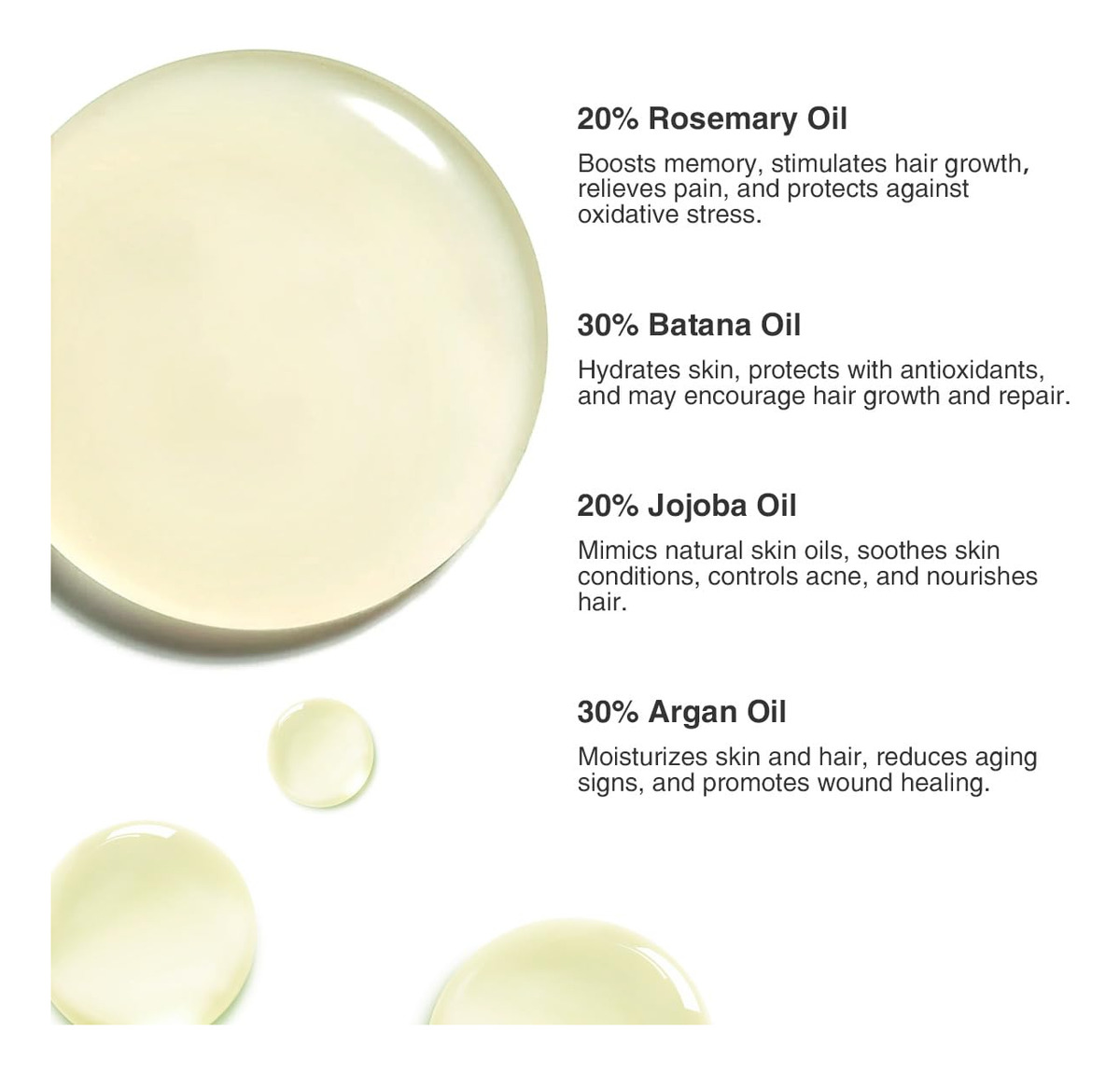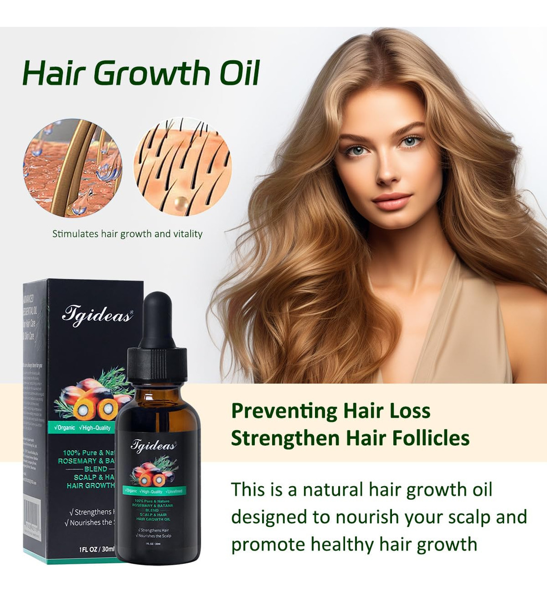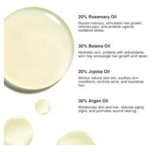 Se você já ouviu falar de óleo de alecrim, óleo de batana, óleo de jojoba ou óleo de argan, os benefícios desses óleos essenciais derivados de ervas naturais ou sementes de ervas naturais são numerosos. Graças ao seu conteúdo antioxidante natural de ácido oleico, ácido linoleico, ácidos graxos e vitamina E, eles são eficazes para melhorar e fortalecer a pele, afastar os estressores do meio ambiente e beneficiar o sistema de saúde de todo o corpo. – Óleo orgânico de crescimento capilar Promotor natural de crescimento capilar enriquecido com óleos de batana, alecrim, argão e jojoba. Melhore o crescimento do cabelo naturalmente com ingredientes orgânicos, promovendo um crescimento mais espesso e saudável. – Melhora o crescimento e a espessura do cabelo. O óleo de batana Gideas foi desenvolvido para promover o crescimento saudável do cabelo e aumentar a espessura. A fórmula rica em nutrientes do óleo ajuda a fortalecer os folículos capilares, reduzindo a quebra e incentivando cabelos mais cheios e resistentes. – Seguro para todos os tipos de cabelo. Este óleo versátil faz maravilhas em cabelos danificados e na pele seca. Ele hidrata e repara profundamente, melhorando a textura do cabelo e restaurando a vitalidade da pele. O uso regular ajuda a revitalizar e rejuvenescer para uma aparência mais saudável. – Óleo nutritivo multiuso Ideal para cuidar do cabelo e da pele, o óleo de batana pode ser usado como tratamento hidratante para cabelos, hidratante de pele ou até mesmo condicionador de unhas. Sua rica mistura de ácidos graxos e vitaminas fornece nutrição abrangente para todas as suas necessidades de beleza. – Fácil aplicação e uso diário Incorpore o óleo de batana perfeitamente em sua rotina diária. Para cabelos, aplique nos cabelos e couro cabeludo úmidos, deixe por 3-5 minutos e depois enxágue. Para a pele, massageie suavemente nas áreas limpas e secas. Adequado para uso diário para manter cabelos e pele saudáveis e hidratados.