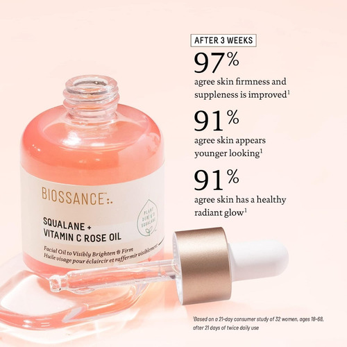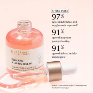 Usar essência de rosa, óleo facial de vitamina C e esqualano para o cuidado diário da pele traz novo brilho e vitalidade à sua pele.