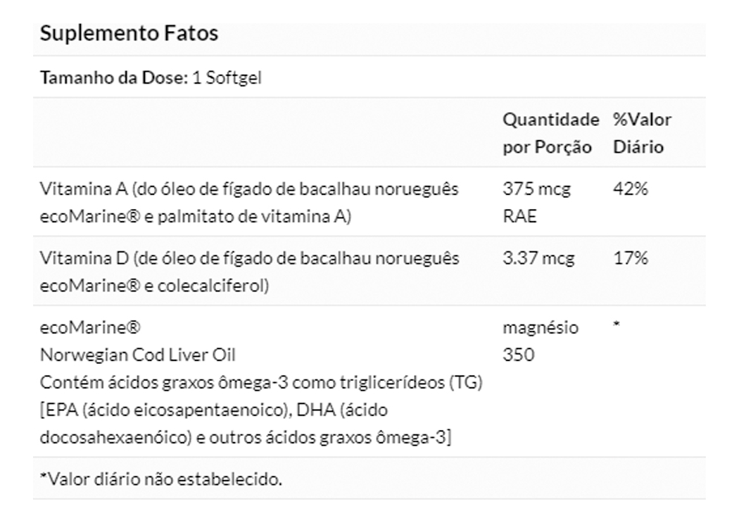 2. Softgels de Fácil Ingestão: As softgels são formuladas para serem fáceis de engolir, oferecendo uma maneira conveniente de incluir o Óleo de Fígado de Bacalhau em sua dieta. Esta forma de apresentação é ideal para quem prefere uma opção sem o sabor característico do óleo de peixe.