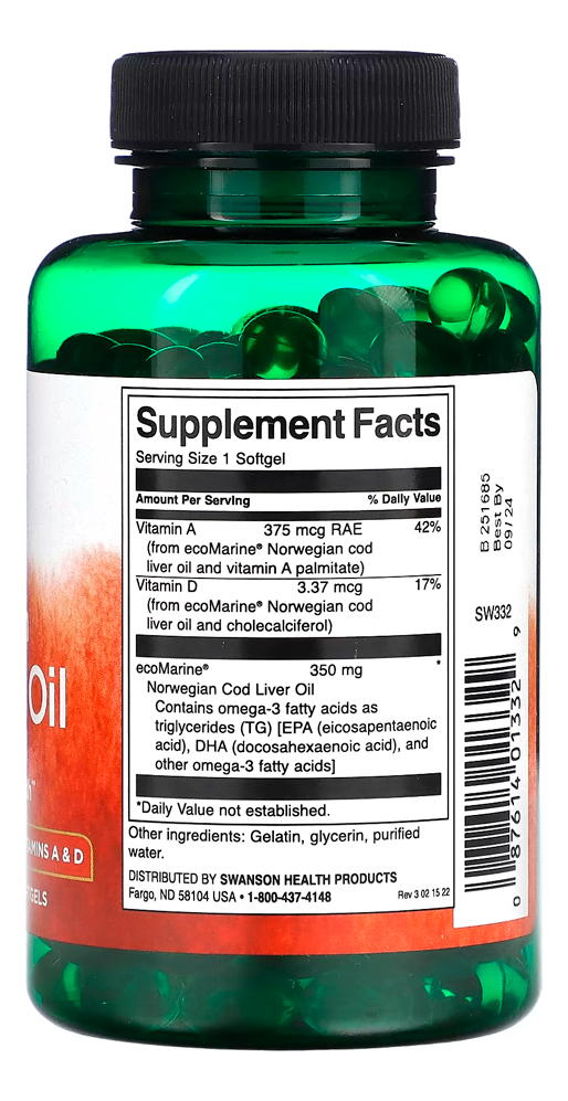 1. Suporte Nutricional Diário: O Óleo de Fígado de Bacalhau Norueguês da Swanson em softgels de 350mg é projetado para fornecer um suporte nutricional diário. Este produto é uma escolha excelente para aqueles que procuram uma maneira prática de complementar sua alimentação cotidiana.