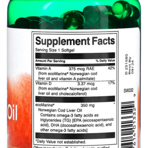 1. Suporte Nutricional Diário: O Óleo de Fígado de Bacalhau Norueguês da Swanson em softgels de 350mg é projetado para fornecer um suporte nutricional diário. Este produto é uma escolha excelente para aqueles que procuram uma maneira prática de complementar sua alimentação cotidiana.