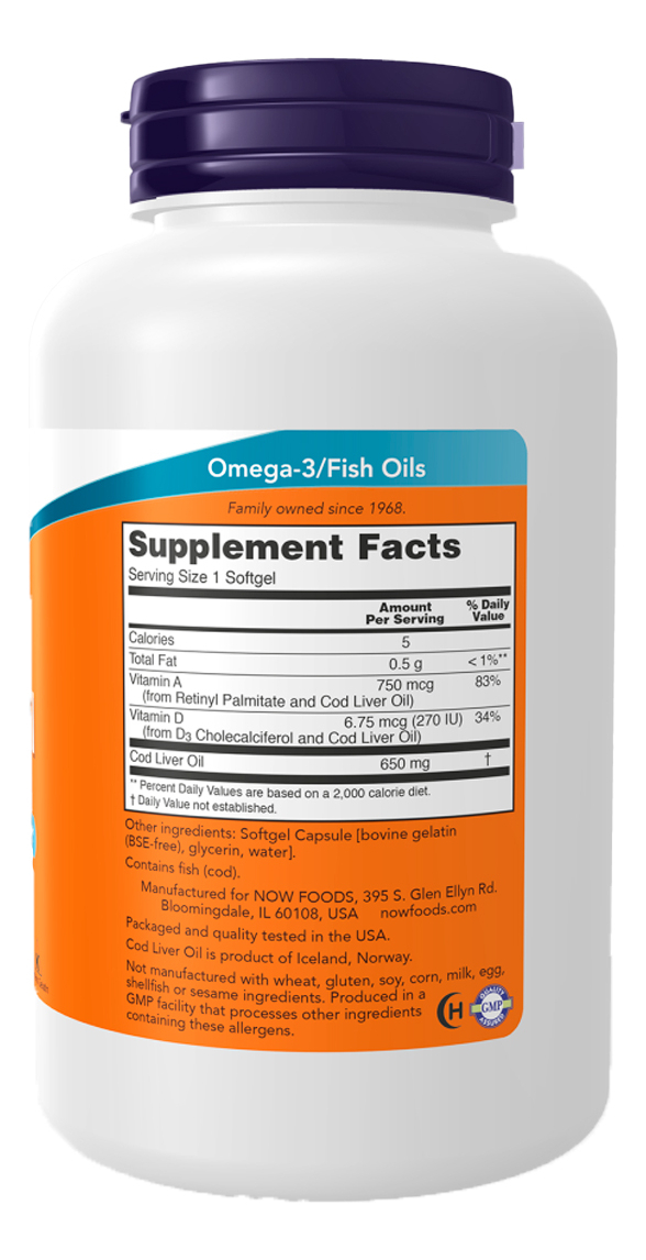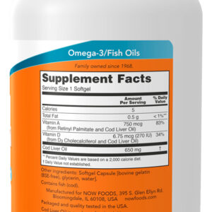 Óleo De Fígado De Bacalhau 650 Mg 250 Cápsulas Cod Liver Oil