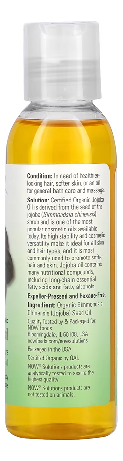 Óleo de Jojoba Now Foods 118ml Orgânico Ideal para Cuidados Pessoais Uso Diário- Importado