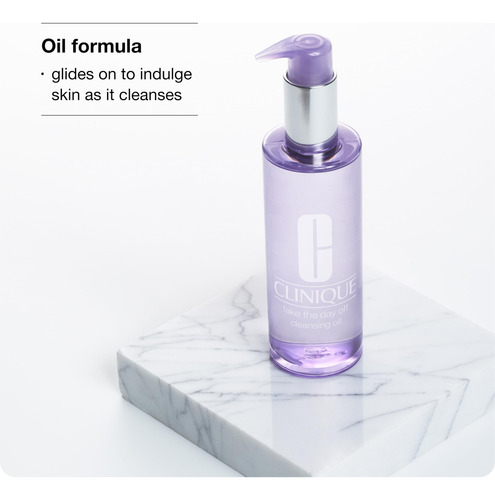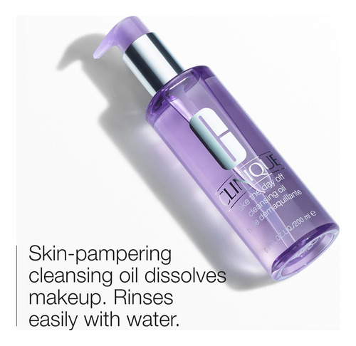 Óleo de limpeza Clinique Take The Day Off — removedor de maquiagem à base de óleo: o óleo de limpeza Clinique Take The Day Off dissolve instantaneamente a maquiagem facial, o óleo e as impurezas. Para todos os tipos de pele. – Enxágue facilmente com água: a fórmula do óleo desliza para mimar a pele enquanto limpa. Enxágue bem com água, sem deixar resíduos. – SEMPRE REMOVA A MAQUIAGEM À NOITE: Ir para a cama com maquiagem pode causar embotamento, irritação e poros entupidos. Crie o hábito de remover a maquiagem. – EXPERIÊNCIA CLÍNICA: testado contra alergias. 100% livre de fragrâncias. Testado por oftalmologistas. – BASEADO NA CIÊNCIA DERMATOLÓGICA: Como uma marca guiada por dermatologistas, o compromisso da Clinique com a segurança começa com a ciência dos cuidados com a pele. Fazemos parcerias com as melhores mentes em dermatologia e formulamos para todos os tipos, tons e preocupações de pele a serviço de todas as peles.