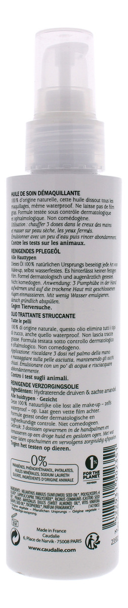 Este óleo de limpeza removedor de maquiagem remove todos os traços de maquiagem, inclusive à prova d'água, revelando uma pele incrivelmente limpa, hidratada e clara. O óleo orgânico de girassol e rícino dissolve instantaneamente a maquiagem,