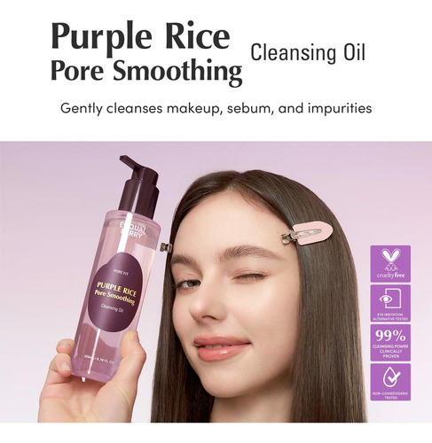 Limpeza profunda e cuidado dos poros com óleo de limpeza suavizante de poros de arroz roxo EQQUALBERRY O óleo de limpeza suavizante de poros de arroz roxo EQQUALBERRY é um limpador de óleo poderoso e suave, projetado para remover maquiagem, limpar profundamente os poros e deixar a pele macia e hidratada. Com uma fórmula leve que dissolve até mesmo as impurezas mais persistentes, esse óleo de limpeza é o primeiro passo perfeito em qualquer rotina de cuidados com a pele. Remoção de maquiagem sem esforço Este óleo de limpeza decompõe a maquiagem com eficácia, incluindo fórmulas à prova dágua e SPF de longa duração, enquanto remove a sujeira e o excesso de óleo presos nos poros e nas linhas finas. Proporciona uma limpeza profunda sem descascar a pele, garantindo uma tez revigorada e equilibrada. Arroz roxo para uma pele mais firme e suave Infundida com arroz roxo, que contém sete vezes mais antioxidantes do que o arroz branco comum, essa fórmula ajuda a melhorar a elasticidade da pele, refinar os poros e melhorar a textura geral da pele. Redução de cravos e espinhas clinicamente comprovada Testado para melhorar visivelmente o congestionamento dos poros, esse óleo de limpeza reduz cravos em mais de 21% e pontos brancos em mais de 37% em apenas um uso. Ao dissolver o excesso de sebo e purificar os poros, ajuda a obter uma aparência mais clara e suave. Fórmula hidratante e calmante Formulado com ceramidas de arroz e extrato de cica, esse limpador ajuda a manter os níveis de umidade enquanto reforça a barreira da pele. Deixa a pele nutrida e revigorada, sem ressecamento ou rigidez. Método de limpeza dupla suave e eficaz Aplique nas mãos secas e massageie suavemente na pele seca por 30 segundos. Adicione água gradualmente para emulsionar, permitindo que o óleo remova as impurezas. Enxágue bem com água morna. Para uma rotina completa de limpeza dupla, continue com o limpador de pacotes purificadores de poros de arroz roxo EQQUALBERRY. O primeiro passo perfeito em sua rotina de cuidados com a pele Projetado para todos os tipos de pele, incluindo pele sensível, o óleo de limpeza suavizante de poros de arroz roxo EQQUALBERRY fornece limpeza profunda, hidratação e cuidado dos poros em uma única etapa simples.