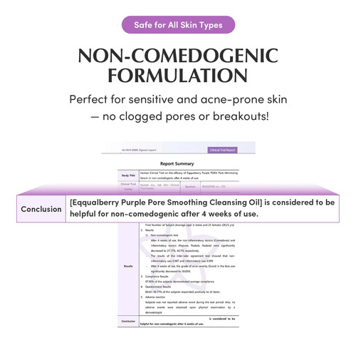 : infundido com arroz roxo rico em antioxidantes, contendo mais de 7 vezes mais antioxidantes do que arroz branco normal para melhorar a elasticidade da pele e refinar os poros para uma tez mais lisa e firme. – REDUÇÃO VISÍVEL DE CRAVOS E ESPINHAS APÓS APENAS UM USO: Testado clinicamente para dissolver o excesso de sebo e limpar profundamente os poros, reduzindo cravos em 21,76% e pontos brancos em 37,24% em uma única aplicação.