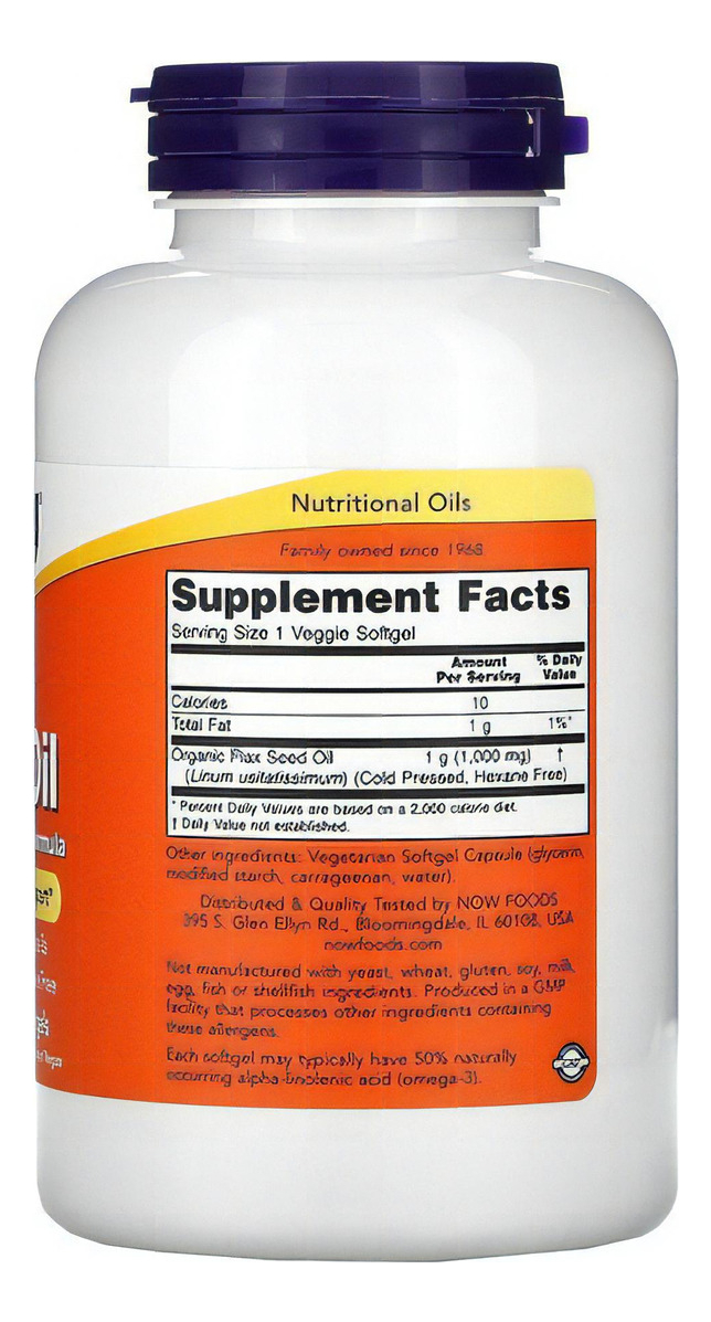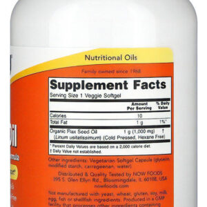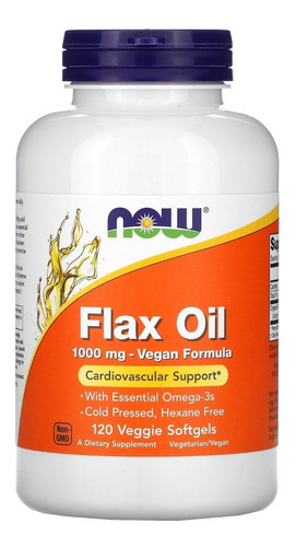 Now Foods, óleo de linhaça, 1.000 mg, 120 cápsulas gelatinosas vegetarianas