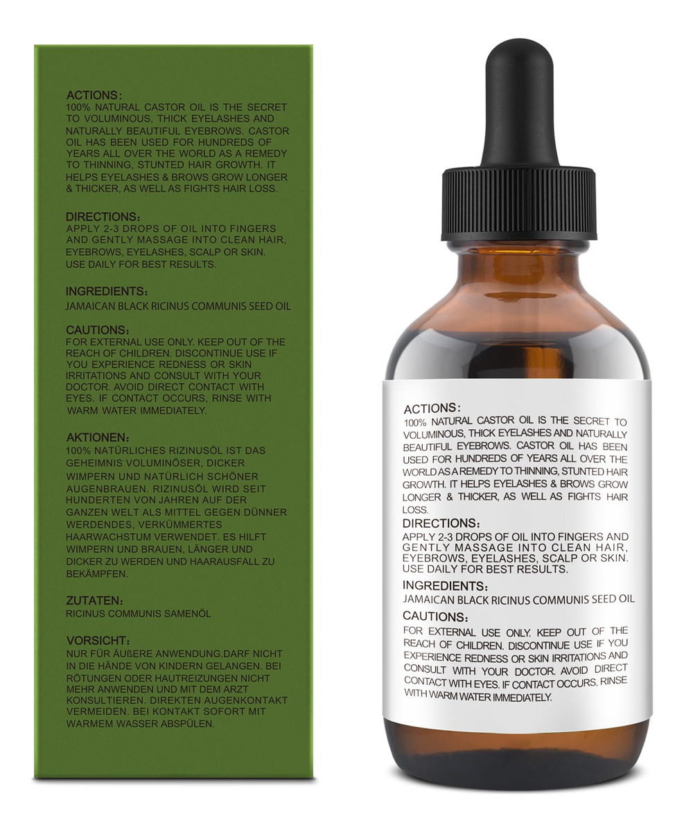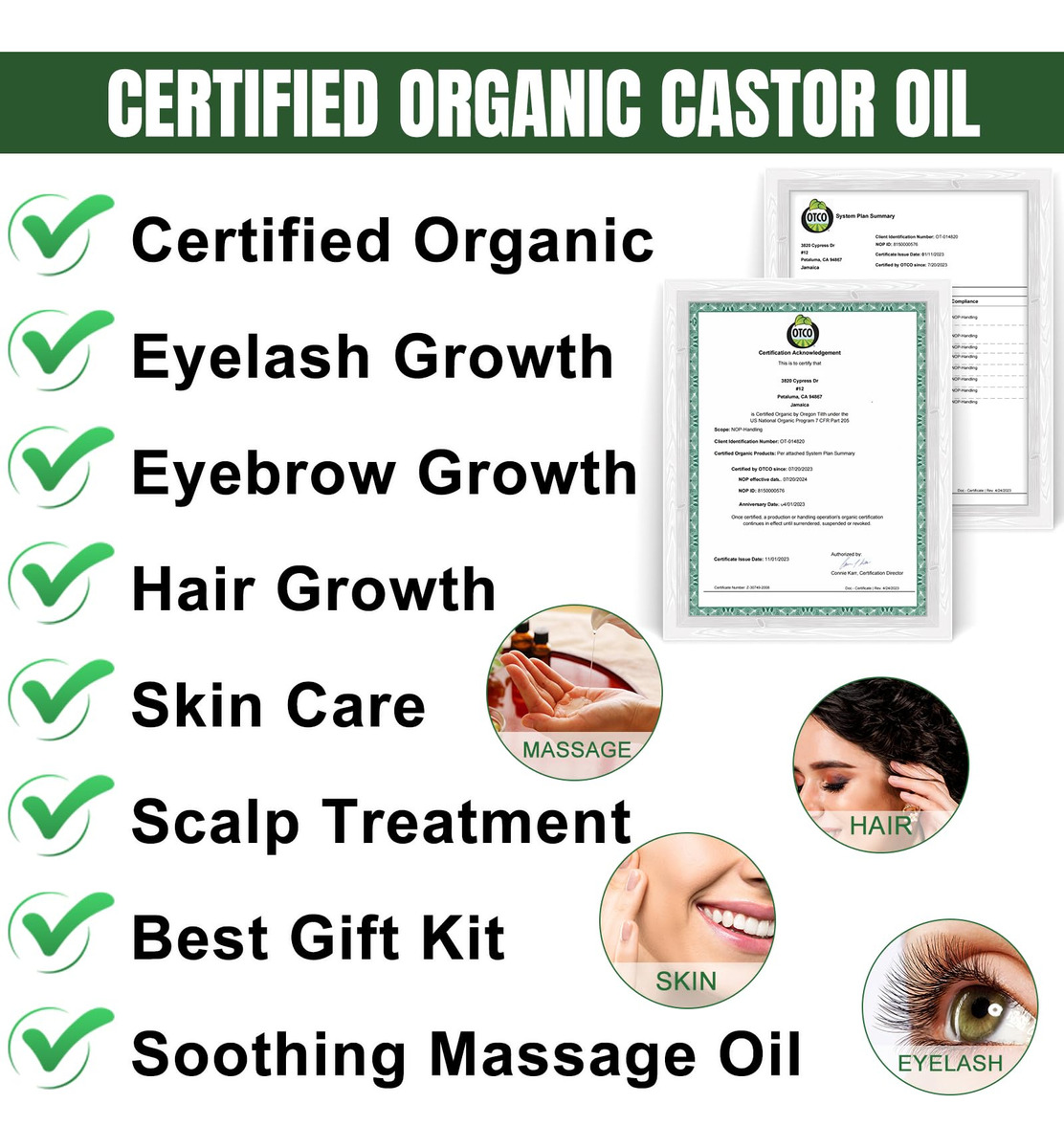 Delicie-se com a bondade natural do óleo de rícino preto para cabelos saudáveis e nutridos. Nosso óleo 100% puro e natural é derivado de sementes de mamona orgânicas, garantindo uma solução premium e eficaz para o cuidado do cabelo. Experimente os benefícios desse óleo versátil, conhecido por sua capacidade de promover o crescimento e a força do cabelo. Enriquecido com nutrientes essenciais, nosso óleo de rícino preto penetra profundamente nos folículos capilares, reduzindo a quebra e promovendo cabelos mais espessos, longos e fortes. Esse óleo não apenas auxilia no crescimento do cabelo, mas também hidrata e nutre os fios, deixando-os macios, brilhantes e gerenciáveis. Diga adeus aos cabelos secos e quebradiços, pois nosso óleo de rícino preto fornece a hidratação que seu cabelo precisa para uma aparência saudável e vibrante. Além dos benefícios para o cuidado do cabelo, nosso óleo também oferece cuidado e alívio do couro cabeludo. Ele acalma o couro cabeludo seco e com coceira, reduz a caspa e cria um ambiente favorável para o crescimento ideal do cabelo. Com o uso regular do nosso óleo de rícino preto, você pode obter cílios mais longos, mais grossos e com aparência mais saudável. Chega de depender de cílios postiços ou extensões caras. Abrace sua beleza natural e deixe seus cílios falarem. Nosso óleo não só faz maravilhas em seus cílios, mas também ajuda a transformar suas sobrancelhas. Diga adeus às sobrancelhas esparsas e irregulares e olá aos arcos perfeitamente moldados. Nosso óleo de rícino preto nutre e fortalece o cabelo da sobrancelha, permitindo que você alcance o formato desejado sem esforço. Aproveite a versatilidade do nosso óleo de rícino preto, pois ele pode ser usado de várias maneiras. Trate seu cabelo com um tratamento nutritivo com óleo quente, use-o como um condicionador profundo, massageie-o no couro cabeludo para uma experiência rejuvenescedora ou aplique uma pequena quantidade para domar o frizz e dar brilho ao seu cabelo estilizado. – Orgânico certificado: nosso óleo de rícino preto orgânico jamaicano é originário da Jamaica e engarrafado na China. A mais alta qualidade e pureza para sua rotina de beleza. Vem com varinha de rímel e pincel de delineador com 2 frascos vazios para que você possa reabastecer e aplicar facilmente o óleo de rícino nos cílios. – Crescimento de cílios e sobrancelhas: experimente cílios mais cheios, grossos e longos com a ajuda de nossos óleos rícinos orgânicos. Suas propriedades nutritivas promovem o crescimento saudável dos cílios. O sérum para o crescimento e a espessura dos cílios promove o crescimento e evita quebras, adicionando volume e realçando sua beleza natural. Obtenha sobrancelhas perfeitamente moldadas e cheias com o poder do óleo de rícino orgânico para estimular os folículos das sobrancelhas, incentivando o crescimento espesso e delicioso para sobrancelhas bem definidas. – Crescimento do cabelo: diga adeus à queda de cabelo e adote cabelos mais espessos e saudáveis.. Nosso óleo de rícino orgânico para cabelos estimula os folículos pilosos, promovendo o crescimento do cabelo e fortalecendo os fracos e danificados fios, além de diminuir a queda de cabelo. Tornando-o mais espesso, mais forte e mais brilhante. – Benefícios naturais para melhorar a beleza: nosso óleo de rícino hidrata e nutre profundamente a pele, deixando-a macia, flexível e radiante. Este óleo de rícino orgânico ajuda a reduzir rugas, linhas finas e manchas, promovendo uma tez jovem e rejuvenescida. Adequado para todos os tipos de pele, pode ser usado como hidratante facial, loção corporal, óleo de massagem, removedor de maquiagem e muito mais, fornecendo cuidados abrangentes para sua pele, corpo e rosto. – Embalagem em frasco de vidro e sem hexano não refinado: nosso óleo de rícino orgânico premium é cuidadosamente obtido e Embalado em uma garrafa de vidro, nosso óleo de rícino orgânico é protegido da luz e do calor, preservando seu frescor e potência. Diga adeus aos recipientes de plástico.