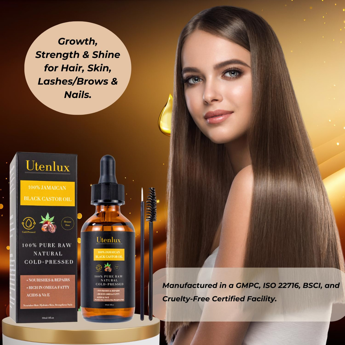 Descubra o segredo para cabelos mais cheios, cílios exuberantes e pele radiante com o óleo de rícino preto jamaicano UTENLUX! Transforme sua rotina de beleza com o óleo de rícino preto jamaicano 100% puro UTENLUX, um óleo prensado a frio, natural e sem hexano que sustenta cabelos saudáveis e nutre sua pele, unhas, sobrancelhas e cílios. Óleos hidratantes para climas frios, presentes de autocuidado para o dia dos namorados, óleos para cabelos saudáveis na primavera, óleos leves para climas mais quentes. Principais benefícios: 100% puro e natural: nossa fórmula prensada a frio e sem hexano preserva as propriedades naturais do óleo de rícino preto jamaicano, proporcionando benefícios para cabelos, pele e muito mais. Suporta cabelos saudáveis: nutre o couro cabeludo e ajuda a manter a aparência de cabelos mais grossos e fortes, ao mesmo tempo que condiciona as sobrancelhas e os cílios para uma aparência mais completa. Hidrata e nutre profundamente: Rico em ácidos graxos ômega e vitamina E, nosso óleo ajuda a restaurar a umidade dos cabelos, pele e unhas secos, reduzindo a aparência de pontas duplas e deixando você com um brilho saudável. Óleo de beleza multiuso: use-o como tratamento para cabelos e couro cabeludo, hidratante diário para a pele ou sérum para cílios e sobrancelhas, cobrindo todas as suas necessidades de beleza. Vem com um pincel de aplicação fácil de usar para uma aplicação precisa e sem bagunça nas sobrancelhas e cílios. Adequado para a maioria dos tipos de pele e cabelo: perfeito para peles sensíveis, cabelos encaracolados ou mechas retas. Nossa fórmula vegana e livre de crueldade é livre de sulfatos, parabenos e ingredientes sintéticos. Por que escolher UTENLUX? Com o óleo de rícino preto jamaicano UTENLUX, você está investindo em uma solução de beleza premium que vai além do cuidado do cabelo. Se você está procurando cabelos com aparência mais saudável, pele mais nutrida ou cílios e sobrancelhas mais cheios, essa fórmula natural tudo-em-um é a chave para aprimorar sua rotina de beleza. Fórmula natural: sem produtos químicos, sem sintéticos e sem hexano Nosso óleo é extraído por métodos naturais, garantindo que sua pele e cabelo sejam nutridos sem exposição a produtos químicos agressivos. Fabricado em uma instalação certificada pela GMPC, ISO 22716, BSCI e Cruelty Free. Distribuído pela RV Performance Brands LLC, 4111-e Rose Lake Dr # 5271 Charlotte, Carolina do Norte 28217, EUA. 100% puro, cru, natural, não refinado, prensado a frio, sem conservantes, aditivos, fragrâncias, produtos químicos, OGM, BPA, álcool, síntese tóxica, sem produtos químicos sintéticos, fabricação ética, honesta, segura, sem hexano, sem propano, sem crueldade, vegana, sem cola Sem dez. – 100% puro, natural, cru e prensado a frio: nosso óleo é livre de aditivos, hexano e ingredientes sintéticos, garantindo a mais alta qualidade e potência para sua rotina de beleza. Presente ideal para cuidados luxuosos com o cabelo. Óleo de ricino 100% puro e natural. Frasco de vidro. – Suporta cabelos saudáveis: nutre naturalmente o couro cabeludo para ajudar a manter a aparência de cabelos mais fortes e grossos, ao mesmo tempo em que reduz a aparência de queda e quebra. Perfeito para presente de Natal. – Melhora os cílios e sobrancelhas: melhora a aparência dos cílios e sobrancelhas, ajudando-os a parecerem mais grossos e cheios com o uso regular. – Nutre a saúde do couro cabeludo: nutre e hidrata o couro cabeludo, ajudando a reduzir o ressecamento e a aparência da caspa, proporcionando uma base mais saudável para o cabelo. – Reduz a aparência de pontas duplas e quebras: suaviza e fortalece os cabelos danificados cabelo, ajudando a reduzir a aparência de pontas duplas e minimizando a quebra. – Hidratante multiuso para a pele: fornece hidratação profunda para a pele seca e escamosa, deixando é macio, suave e nutrido com ácidos graxos ômega e vitamina E. – Nutre unhas e cutículas: fortalece as unhas quebradiças e suaviza as cutículas, ajudando a promover unhas com aparência mais saudável e reduzindo a aparência de quebras. – Melhora a textura geral do cabelo: o uso regular do óleo melhora a textura do cabelo, deixando-o brilhante, macio e mais manejável. – Adequado para a maioria dos tipos de pele e cabelo: suave o suficiente para uso diário uso, adequado para a maioria dos tipos de pele e cabelo, incluindo pele sensível, cabelos encaracolados ou lisos. – Vegano e livre de crueldade: feito com produtos de origem ética ingredientes, livres de parabenos, sulfatos e produtos químicos agressivos, e nunca testados em animais. Óleos hidratantes para climas frios, presentes de autocuidado para o dia dos namorados, óleos para cabelos saudáveis na primavera, óleos leves para climas mais quentes.