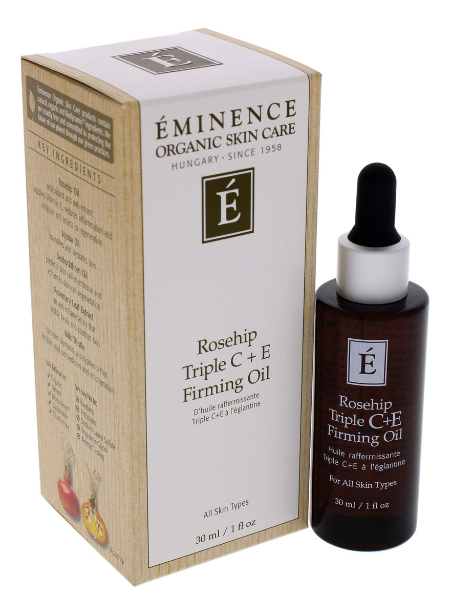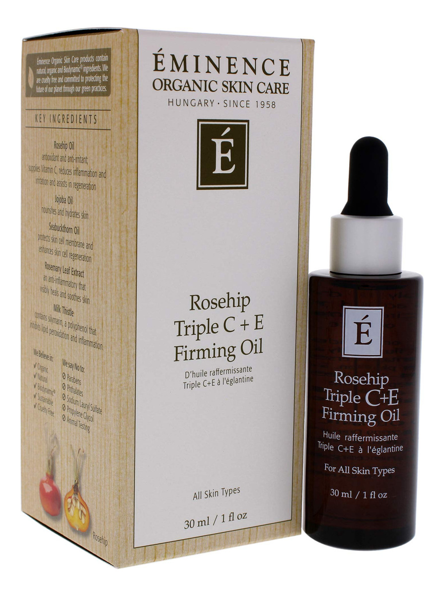 Óleo firmador Eminence Rosehip Triple C+e 1 onça. – O óleo firmador triplo C+E de rosa mosqueta é um tratamento facial eficaz – Composto por uma mistura de ativos voltados para resultados – Ingredientes que fornecem hidratação e proteção intensas – Tipo de pele: madura, todos os tipos de pele