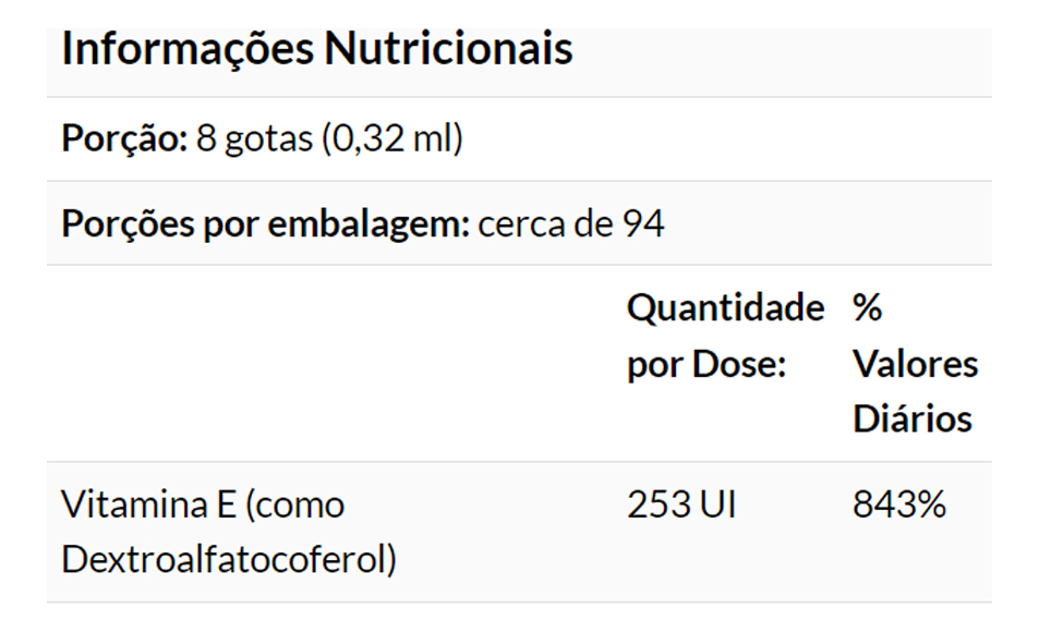 5. Composição do Produto: Enriquecido com 170mg de Vitamina E por porção, este óleo é 100% puro, sem aditivos artificiais. A pureza do produto assegura uma experiência natural e eficaz, ideal para quem busca uma solução prática e benéfica. VALIDADE LONGA