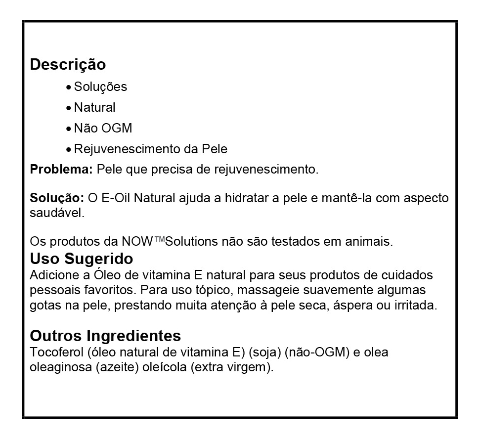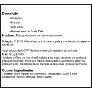 3. Produto de Alta Qualidade e Disponibilidade: Importado e representando a qualidade da Now Foods, este óleo de Vitamina E está disponível para pronta entrega. Você pode começar a usá-lo imediatamente, aproveitando todos os seus benefícios sem atrasos.
