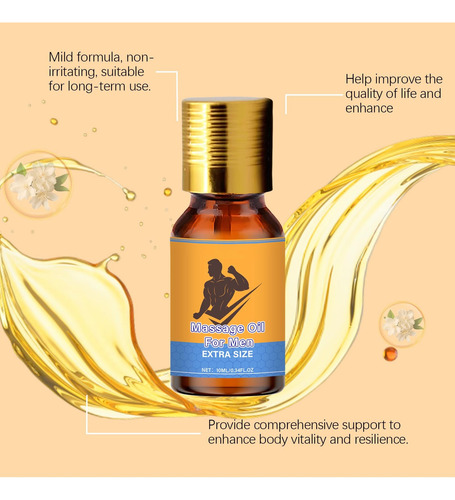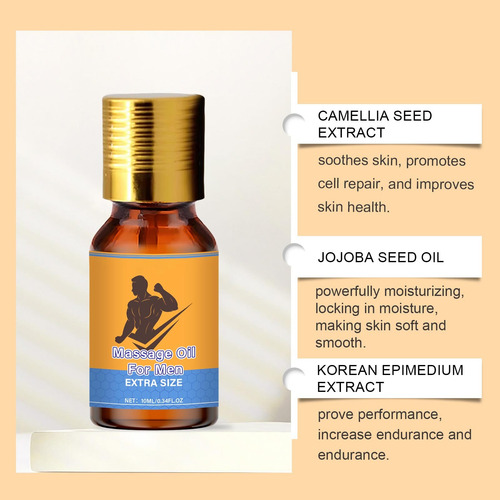Óleo essencial para massagem masculina – 10ml Hidratante e energizante Apresentamos nosso óleo essencial para massagem masculina, um produto multifuncional desenvolvido especificamente para o cuidado externo da pele masculina. Formulado com uma seleção de ingredientes naturais, este óleo de 10 ml oferece hidratação profunda e de rápida absorção, deixando a pele macia e com uma sensação instantânea de vitalidade. Sua composição oferece excelentes propriedades hidratantes que ajudam a manter o equilíbrio natural da pele, combatendo a secura e rugosidade típicas. É a solução perfeita para nutrir e suavizar a pele, atuando como um tratamento refrescante e restaurador após o barbear ou o banho. Ideal para sessões de massagem, sua textura permite um deslizamento suave e confortável, reduzindo o atrito para maximizar o relaxamento e o conforto. Além disso, seu efeito tonificante ajuda a aliviar a fadiga muscular, tornando-o um ótimo aliado para se recuperar após o exercício ou para começar o dia com mais energia. Mais do que um óleo de massagem, é um produto abrangente para cuidados pessoais. O uso regular nutre a pele em profundidade, melhorando sua textura e aparência geral para uma aparência mais saudável e rejuvenescida. Descubra a combinação perfeita de bem-estar e cuidados práticos em uma garrafa. Garantia do vendedor: 30 dias