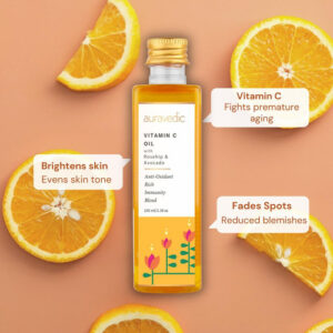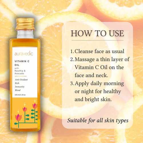 Óleo facial auravédico com vitamina C Com rosa mosqueta, abacate e vitamina E Hidratante natural e orgânico para a pele Óleo de massagem facial ayurvédica para pele macia e suave Óleo facial de 100 ml