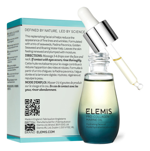 Óleo marinho ELEMIS Pro-Collagen | O óleo facial diário ultraleve antirrugas hidrata, nutre e hidrata profundamente para uma aparência jovem | 15 mL – Hidrata, restaura, reabastece – Reabastece o óleo facial – Para linhas finas e rugas