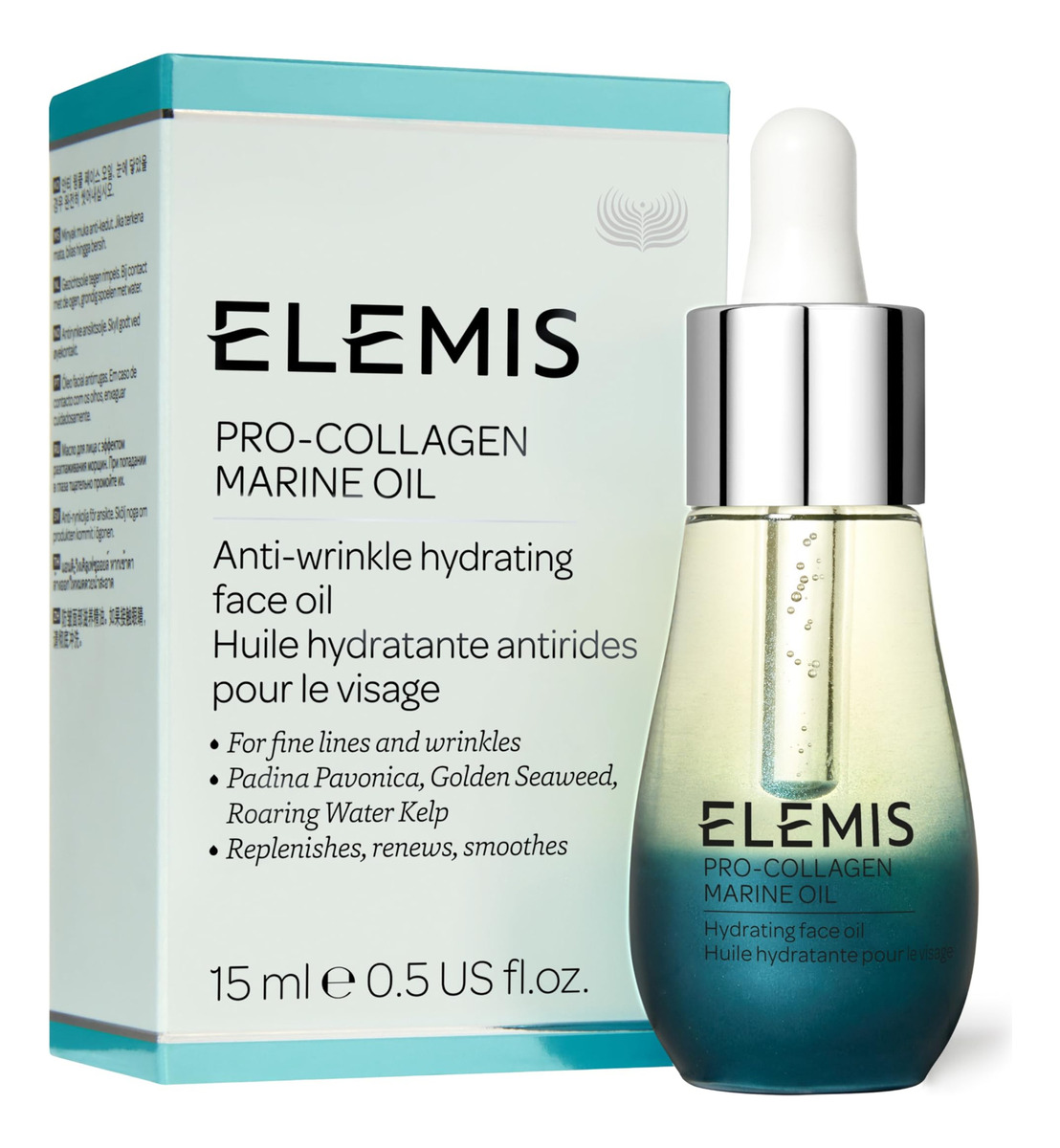 Óleo marinho ELEMIS Pro-Collagen | O óleo facial diário ultraleve antirrugas hidrata, nutre e hidrata profundamente para uma aparência jovem | 15 mL – Hidrata, restaura, reabastece – Reabastece o óleo facial – Para linhas finas e rugas