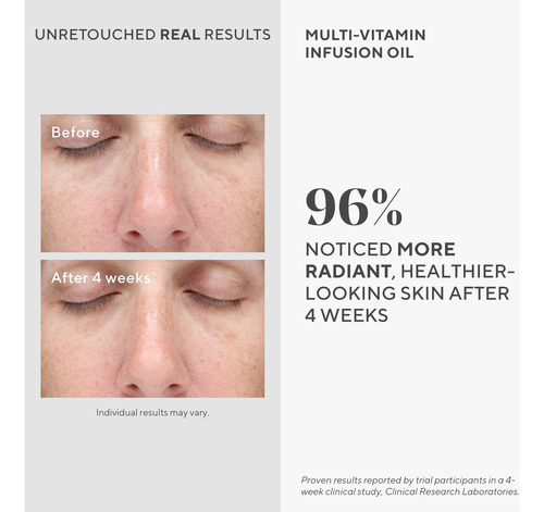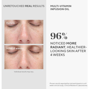 – ÓLEO FACIAL MULTIVITAMÍNICO: nosso óleo de infusão multivitamínico aumenta a hidratação, ilumina a pele e melhora a barreira cutânea, tudo com uma fórmula de óleo facial leve e de absorção rápida.