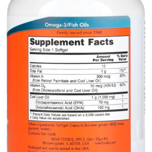 Óleo Fígado Bacalhau 1000mg Now Foods 180 Soft Importado
