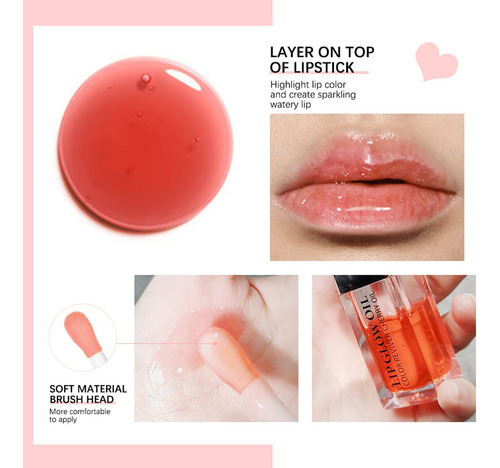 Suave e seguro: nosso óleo labial usa ingredientes vegetais naturais e fórmulas profissionais para ajudar a reduzir problemas labiais, como descamação e lábios rachados, e cuidar dos lábios a qualquer hora e em qualquer lugar. Aliviar a pele rachada: o óleo labial transparente é hidratante e pode ajudar a reter a umidade do lábio, aliviando assim a pele rachada. Características: Pode nutrir eficazmente os lábios e mantê-los hidratados. Impermeável, à prova de suor e fácil de remover a maquiagem. – Óleo labial hidratante moderno. Este óleo labial líquido superbrilhante pode expressar brilho e lábios carnudos. Textura hidratante para uma aparência clara dos lábios. Tinta diária fácil e confortável! Seja você novata em maquiagem ou maquiadora, mulher ou estudante, este óleo hidratante para lábios funcionará para você. – Ingredientes vegetais nutritivos Enriquecido com óleo de semente de cereja, nutre profundamente os lábios e ajuda a proteger contra o estresse externo e os lábios secos. Cuide de seus lábios, macios como um caroço, deixe seus lábios ficarem macios e elásticos. – Vem com cabeça de escova Brush HeadSoft, mais confortável de aplicar. Ele pode ser usado com todos os seus batons foscos, esmalte labial líquido, esmalte labial fosco, etc. Adicione pontos à beleza do batom e deixe a beleza UP UP UP UP! – Vários usos. Use sozinho para clarear as linhas dos lábios, aplique-o levemente e não pegajoso; aplique antes da maquiagem para realçar a cor dos lábios, nutrir e iluminar os lábios e fornecer uma excelente base para a maquiagem labial subsequente. Além disso, se você aplicá-lo várias vezes, ele mantém um brilho claro. – Altamente recomendado. Cuide de seus lábios, macios como um lenço, deixe-os ficarem macios e elásticos. Nosso brilho labial é pequeno e portátil, com um design fofo. É um item indispensável para sua bolsa e pode atender às suas necessidades diárias de cuidados com os lábios. Também é a melhor opção de presente para pessoas importantes.