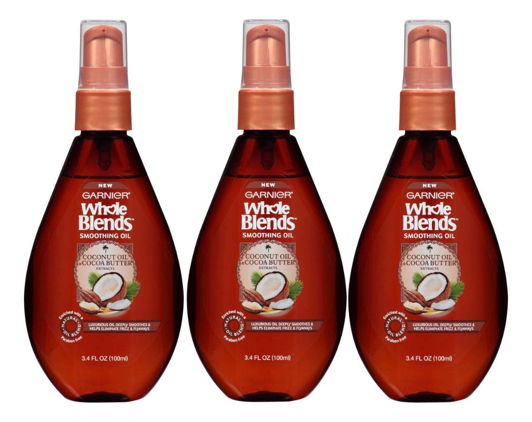 Óleo suavizante Garnier Hair Care Whole Blends com óleo de coco e extratos de manteiga de cacau, 3,4 fl oz (3 unidades) — O óleo suavizante Garner Whole Blends com extratos de óleo de coco e manteiga de cacau doma e controla cabelos crespos — O óleo suavizante Garner Whole Blends com óleo de coco e extratos de manteiga de cacau tem uma fórmula aveludada que floresce com uma fragrância exótica – Garner Whole Blends Smooothing Oil com óleo de coco e extratos de manteiga de cacau O óleo vegetal com extratos de óleo de coco e manteiga de cacau nutre o cabelo e doma o frizz e a flacidez.