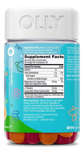 Gomas OLLY Kids Chillax para um humor calmo e relaxado*, magnésio, L-teanina, extrato de erva-cidreira, suplemento mastigável, sabor de sorvete, suprimento para 35 dias 70 unidades (a embalagem pode variar) Gomas OLLY Kids Chillax, formuladas para apoiar um clima calmo e relaxado.* Elas contêm uma mistura de magnésio, um mineral essencial para várias funções no corpo infantil, L-teanina, aminoácido reconhecido por seus benefícios, e o extrato de erva-cidreira, uma planta tradicionalmente usada há séculos. Recomendado para crianças de 7 anos ou mais, duas gomas devem ser mastigadas diariamente, conforme necessário, sem a necessidade de comida ou água. Seu sabor Sunny Sherbet combina deliciosamente framboesa, limão e laranja com outros sabores naturais. Sem glúten e sem cores ou sabores sintéticos. Cada frasco contém 70 gomas, um suprimento para 35 dias. Novo design com o mesmo conteúdo confiável, ideal para meninos e meninas que desejam relaxar naturalmente.* *Essas declarações não foram avaliadas pelo FDA. Este produto não se destina a diagnosticar, tratar, curar ou prevenir nenhuma doença. Essas gomas são formuladas para promover um humor calmo e relaxado, ideal para a paz de espírito das crianças. Elas contêm magnésio, um mineral essencial que apoia várias funções vitais no corpo das crianças para seu bem-estar geral. Incluem L-teanina, um aminoácido reconhecido por seus efeitos positivos no relaxamento sem causar sonolência. Seu sabor Sunny Sherbet combina framboesa, limão e laranja, tornando a ingestão diária agradável e doce experiência. Eles não contêm glúten e não contêm cores ou sabores sintéticos, garantindo um suplemento natural e seguro para crianças acima de 7 anos. VIDA SHOP Bem-vindo à Vida Shop Where Every Click Ignites Joy! Na Vida Shop, somos apaixonados por tornar sua experiência de compra segura, rápida e memorável. Descubra produtos 100% originais e exclusivos cuidadosamente selecionados para seu estilo de vida. Por que comprar conosco? Qualidade e autenticidade: somente produtos genuínos de marcas reconhecidas. Pagamentos 100% seguros: compre com confiança em nossas plataformas confiáveis. Pagamentos fáceis: aproveite opções de pagamento simples e convenientes. Atenção personalizada: nossa equipe está pronta para ajudá-lo 24 horas por dia, 7 dias por semana. Entregas rápidas e rastreáveis: entregas no México, Argentina, Brasil, Chile e Colômbia em 4 a 8 dias úteis. Devoluções gratuitas: não está satisfeito? Devolva gratuitamente, sem complicações. A Vida Shop oferece mais do que produtos oferecemos confiança e satisfação. Compre agora e experimente a diferença! Servindo orgulhosamente a América Latina com amor. Marca: OLLY Número do modelo do item: B0F4WXL39D Dimensões da embalagem: 13,1 x 7,2 x 7,2 cm (= 679 cm3) Peso da embalagem: 0,236 Unidade do item: 70,0/contagem Cor: laranja Tamanho: 70 unidades (pacote com 1) Ingredientes: Outros ingredientes: xarope de glicose, açúcar, água, gelatina, ácido lático, ácido cítrico, Óleo vegetal (coco, canola) e cera de carnaúba (para evitar que grude), sabor natural, concentrado de suco de laranja, pectina, suco de frutas e vegetais (cor). Palavras-chave do público-alvo: gomas calmantes para crianças , suplementos calmantes para crianças, magnésio para crianças, L-teanina para crianças, extrato de erva-cidreira, gomas de sorvete, suplementos sem glúten, suplementos sintéticos sem corantes, gomas para melhorar o humor, suplementos minerais para crianças, suplementos calmantes naturais para crianças, gomas com sabor de frutas, suplementos para crianças com mais de 7 anos, gomas mastigáveis para crianças, suplementos para funções corporais,