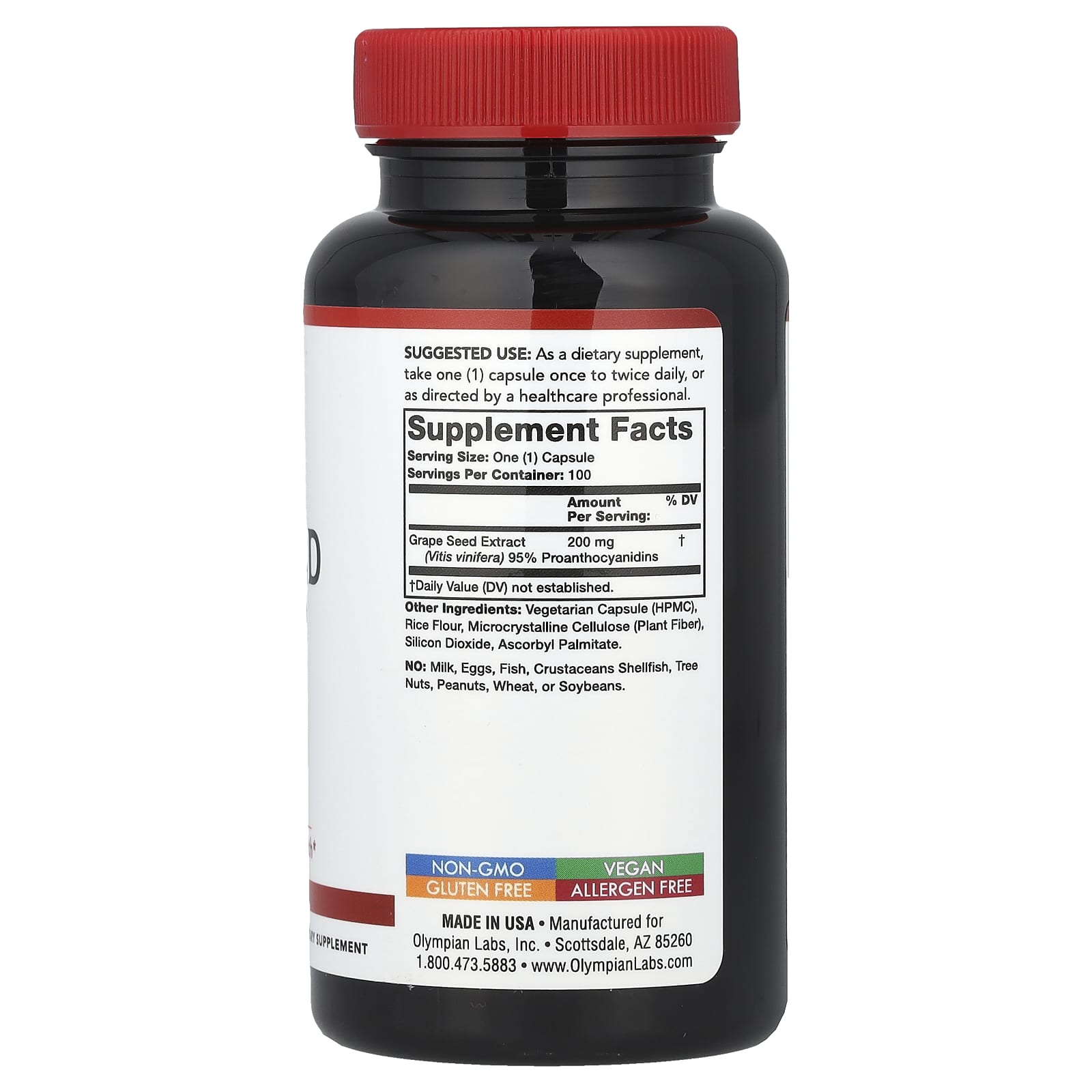 Olympian Labs Extrato de Semente de Uva 200 mg 100 Cápsulas Vegetais – Olympian Labs Suplementos Antioxidantes Extrato de semente de uva.