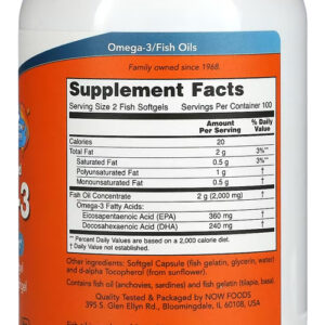 Ômega-3 1.000mg Now Foods 180/120 200 Cápsulas Softgels Gelatina de Peixe Rico em Ácidos Graxos – No Brasil