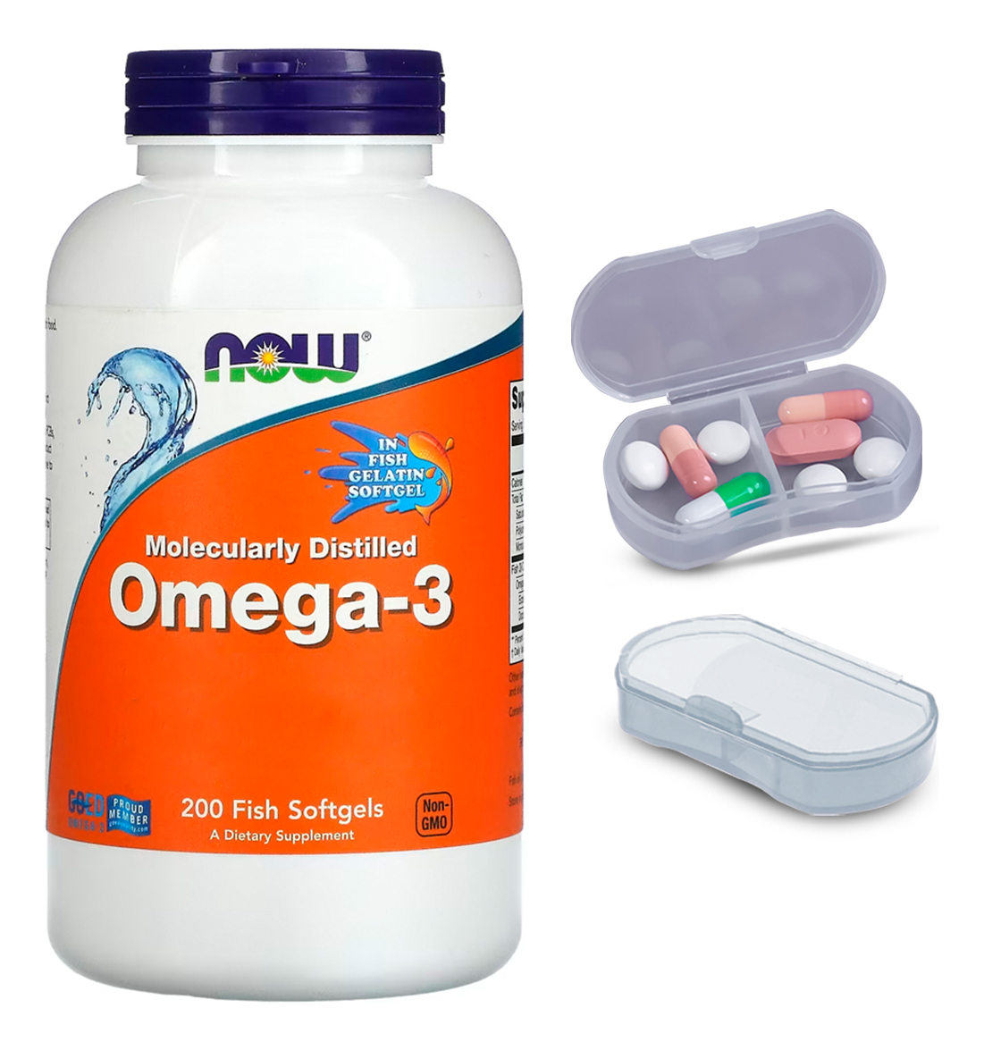 Kit Ômega-3 1.000mg Now Foods 200Caps Softgels + Porta Cápsulas Apoio Nutricional Efetivo: O Ômega-3 da Now Foods fornece 1000mg por cápsula, incluindo EPA e DHA, essenciais para manter uma rotina nutricional equilibrada. Este suplemento é escolhido por sua capacidade de complementar a alimentação diária. Softgels de Alta Potência: Apresentado em um frasco com 200 softgels, este suplemento garante uma utilização prolongada e uma administração de dosagem fácil. As cápsulas moles facilitam o consumo regular e são ideais para manter a constância do uso. Produto de Qualidade Internacional: Importado, o Ômega-3 da Now Foods atende a altos padrões de qualidade. Com a vantagem de estar disponível para pronta entrega, você pode iniciar seu uso rapidamente, sem complicações ou demoras. Porta Cápsulas com Duas Repartições: O kit também inclui um porta-cápsulas prático, dividido em duas seções internas. Isso permite uma organização eficaz e separada de diferentes tipos de cápsulas ou pílulas. Composição Detalhada e Pura: Cada softgel contém 1000mg de Ômega-3, com 180mg de EPA e 120mg de DHA. A formulação é livre de impurezas, garantindo a entrega de um produto puro e de origem controlada. VALIDADE LONGA