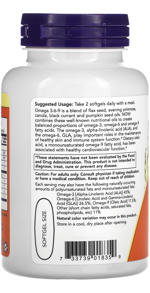 O suplemento Ômega 3 6 9 1000mg da Now Foods vem em uma embalagem de 100 cápsulas de softgels. Cada cápsula é cuidadosamente formulada para oferecer um equilíbrio nutricional otimizado;